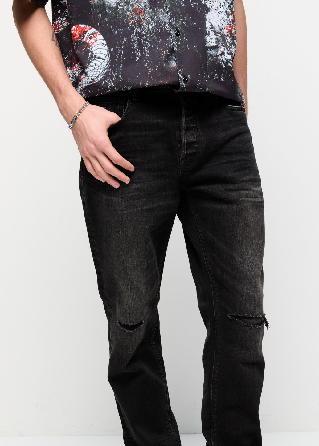 - Zip fly and button closure