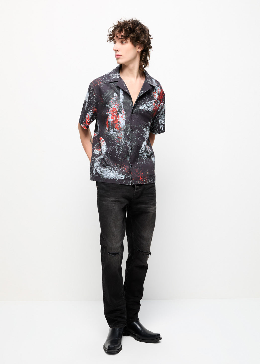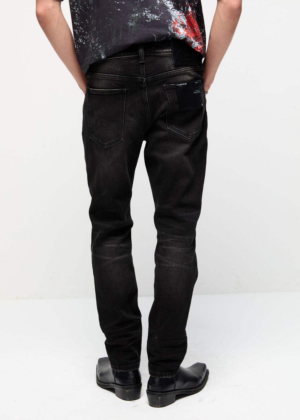 Step into timeless fashion with black super-skinny jeans from the C P S x Bodyslam collection. Designed in the style of Toon Bodyslam, this design is finished with a signature guitar-pick logo, adding a cool edge that’s perfect for everyday wear.
