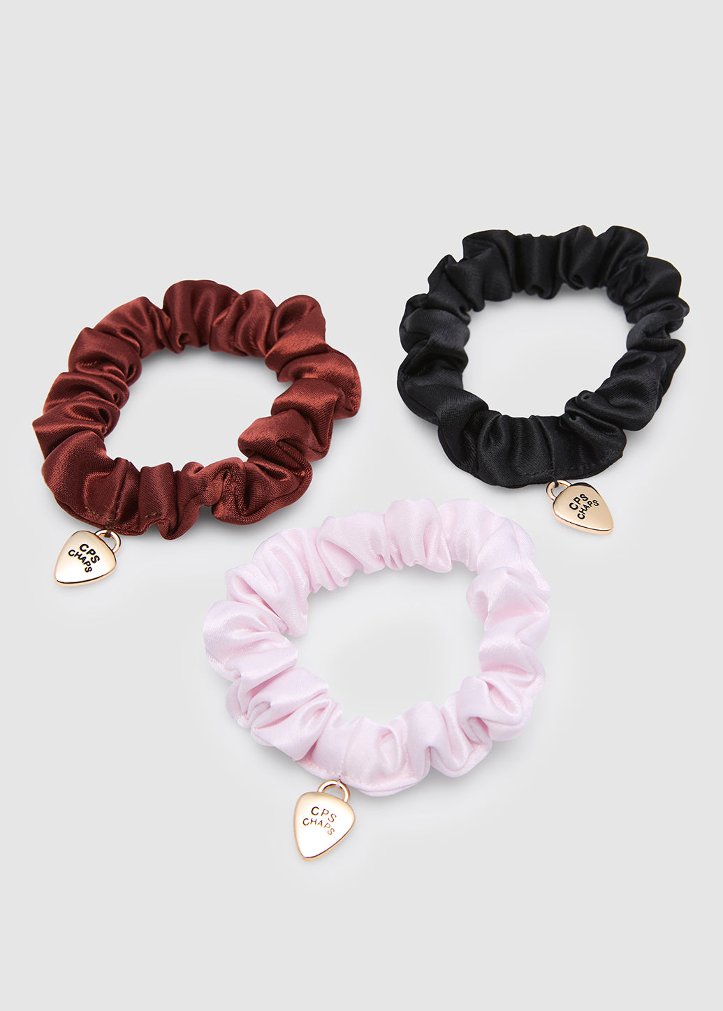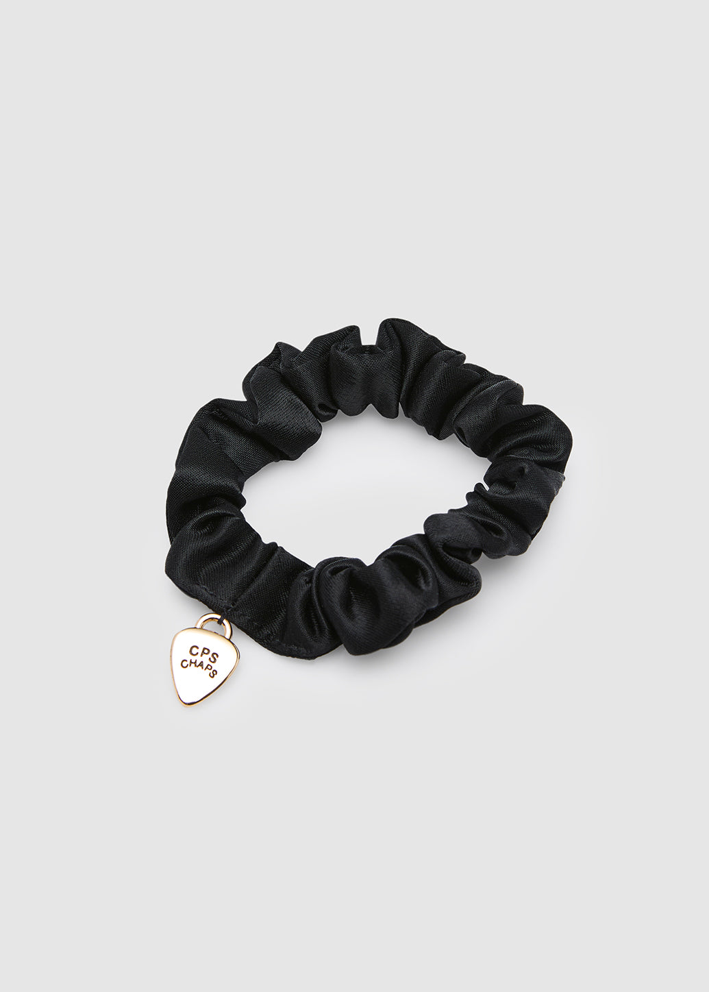 Add a touch of chic to your look with our soft, shiny satin scrunchies. Its thin design is comfortable and won't pull your hair, while the hanging gold guitar pick charm gets a unique brand symbol. The item adds a distinctive flair to express your style.