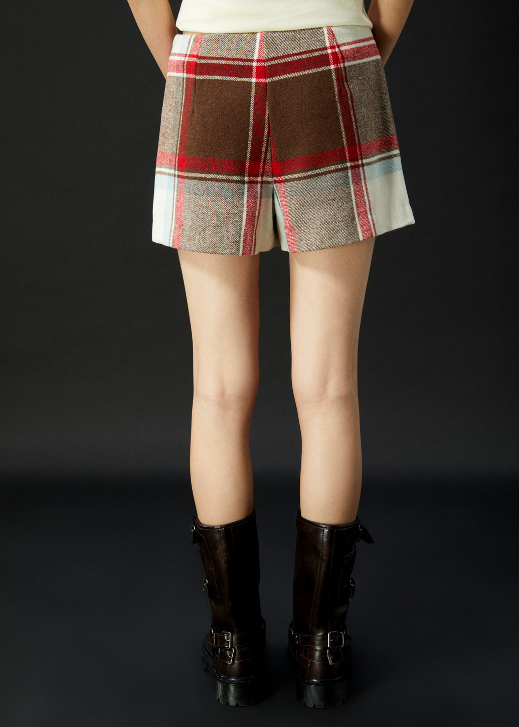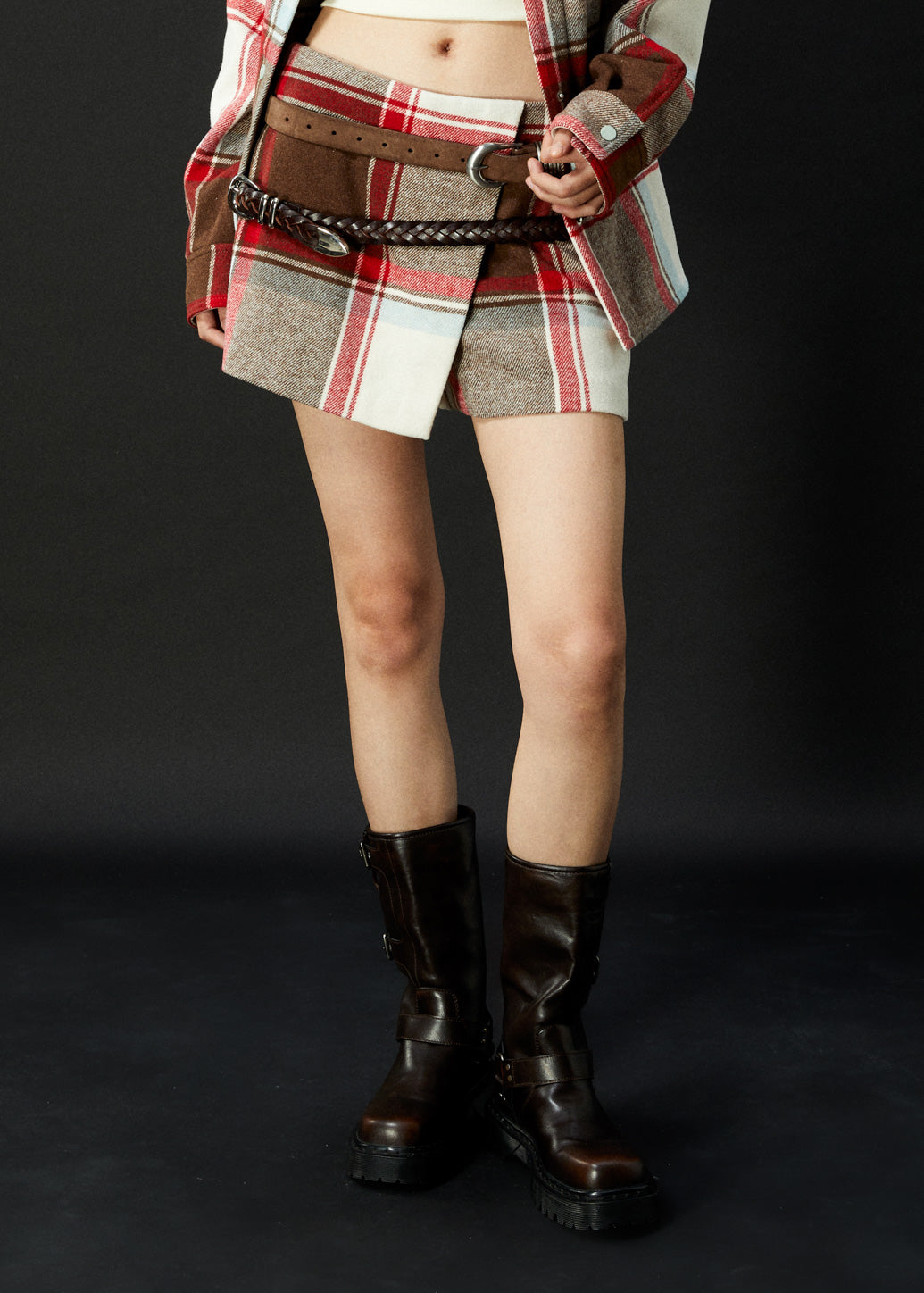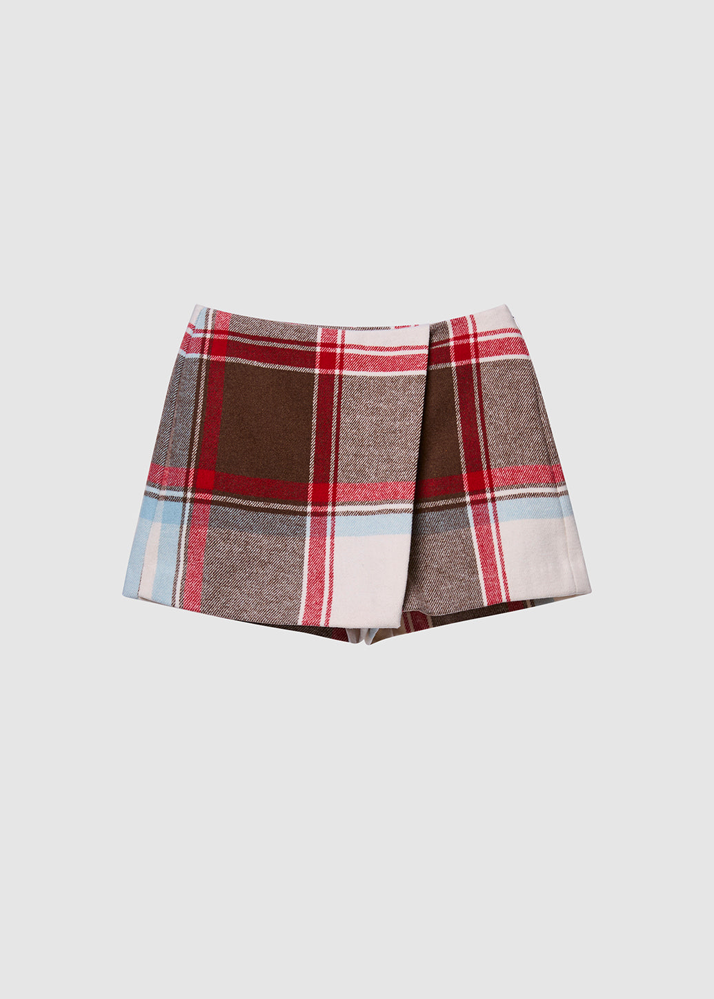Wrap skort featuring a classic red check print, enhanced with a mix of warm tones for added depth and charm. Balancing coziness with fashion-forward appeal, this latest piece is perfect for casual looks and festive Christmas style.