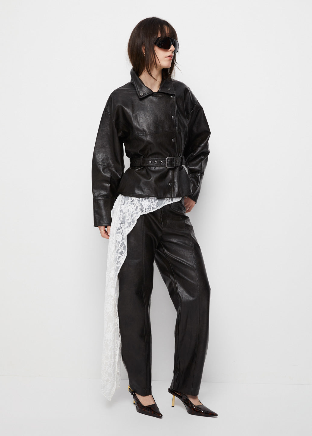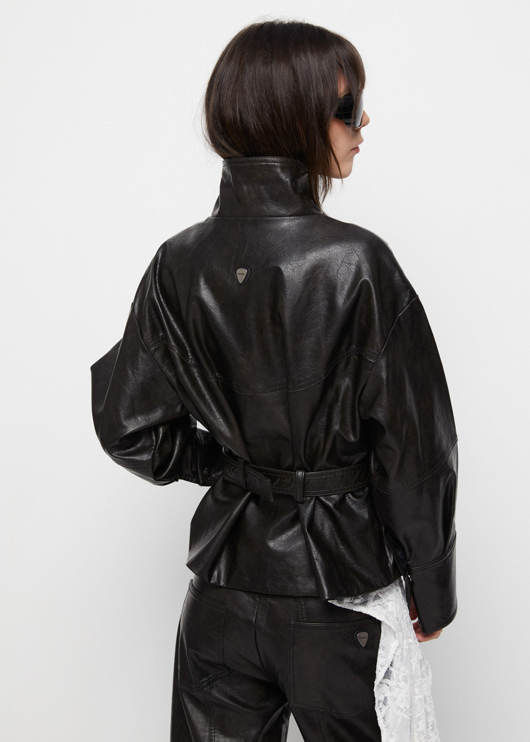 BELTED FAUX LEATHER JACKET