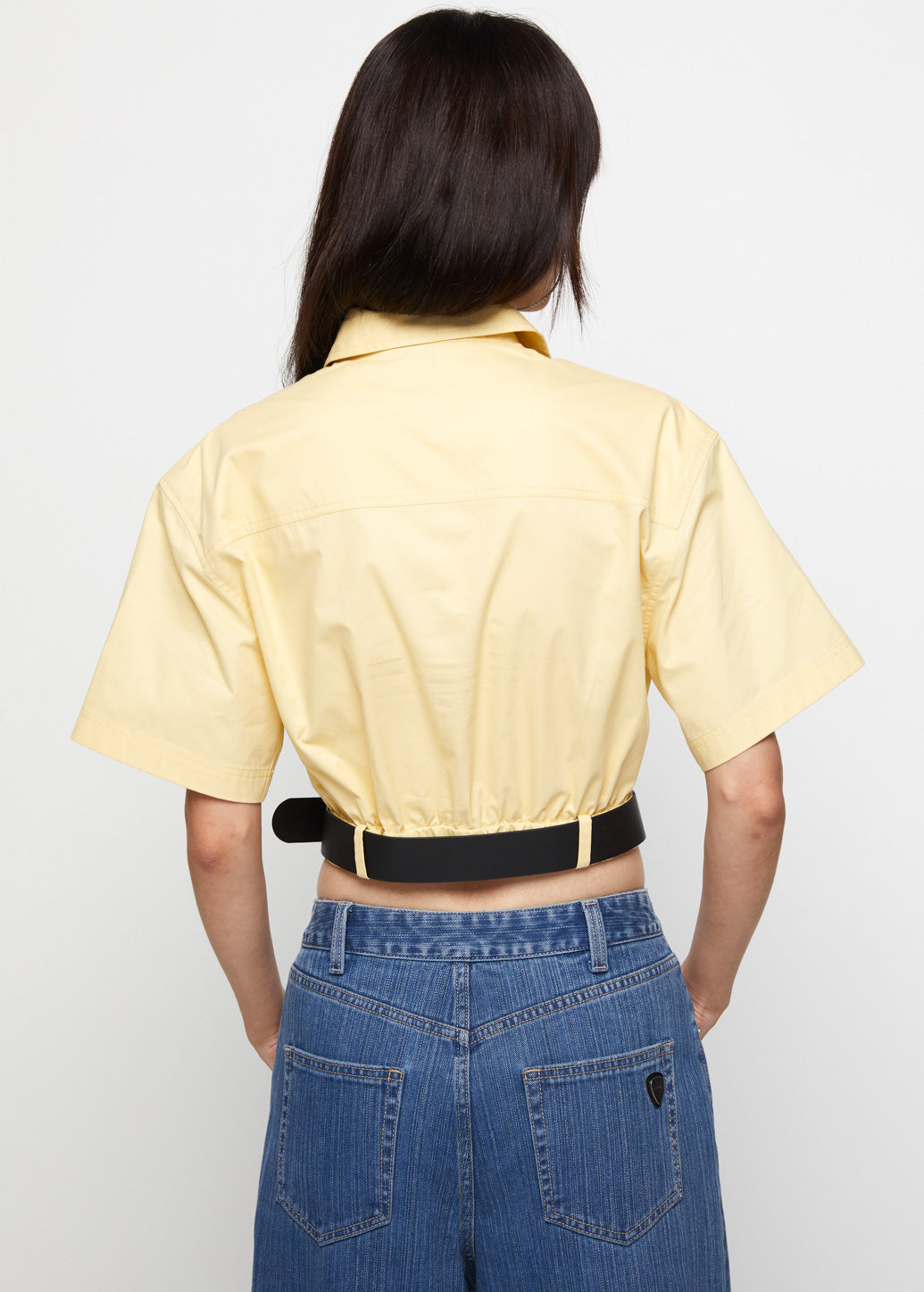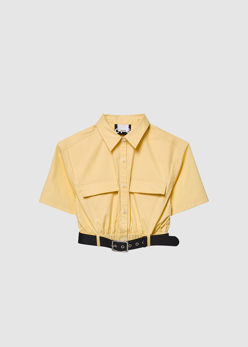 Enhance your look with a unique edge with this short-sleeve blouse from the exclusive CPS x IRADA collaboration. Designed with dual flap chest pockets and an adjustable belt detail at the hem, it strikes the perfect balance between modern sophistication and feminine flair. A versatile piece that elevates any outfit with confidence and contemporary style.