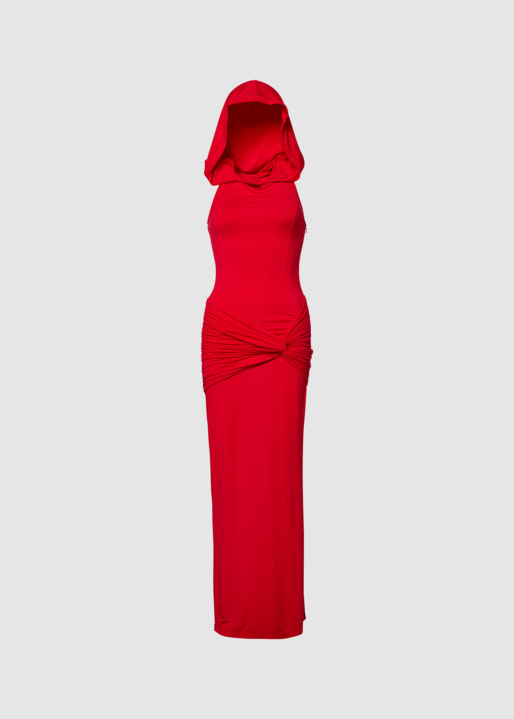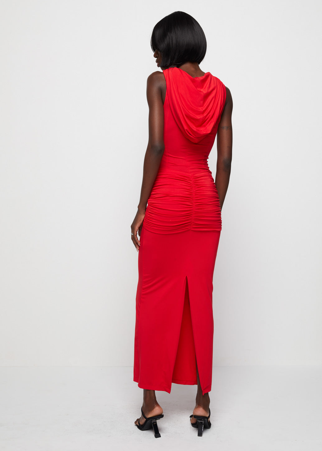Embrace modern sophistication with this sleeveless maxi dress from the CPS x IRADA collaboration. Featuring contemporary hood detail, it stands out with draped gathered at the hips for a refined yet edgy silhouette—perfectly capturing the confidence and individuality of the modern woman.