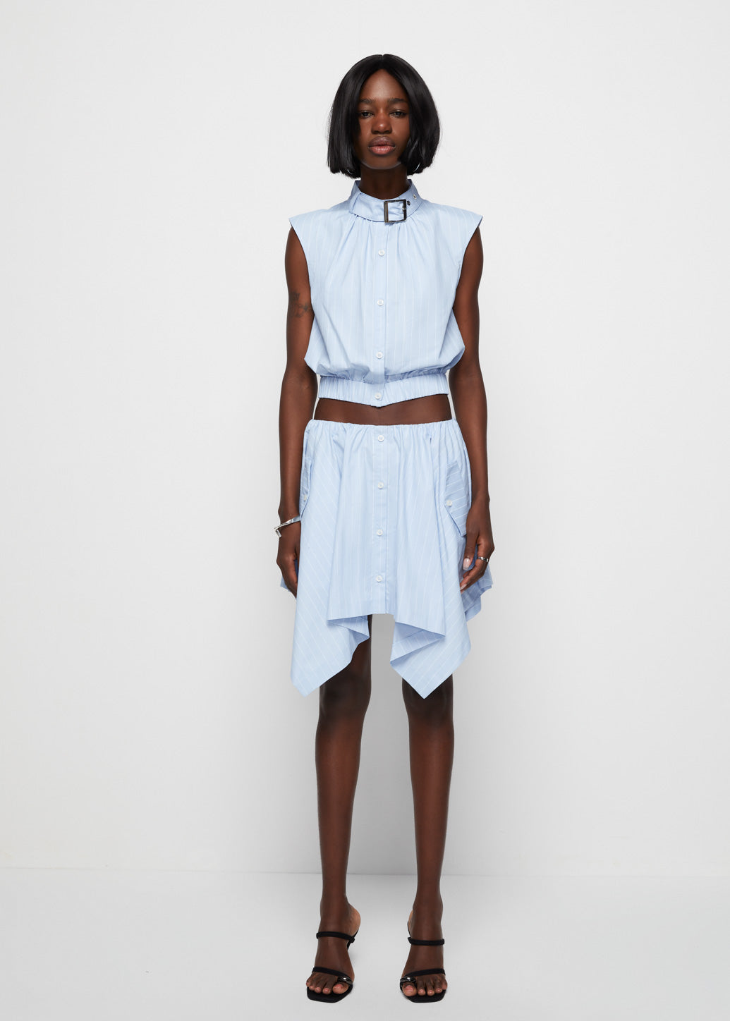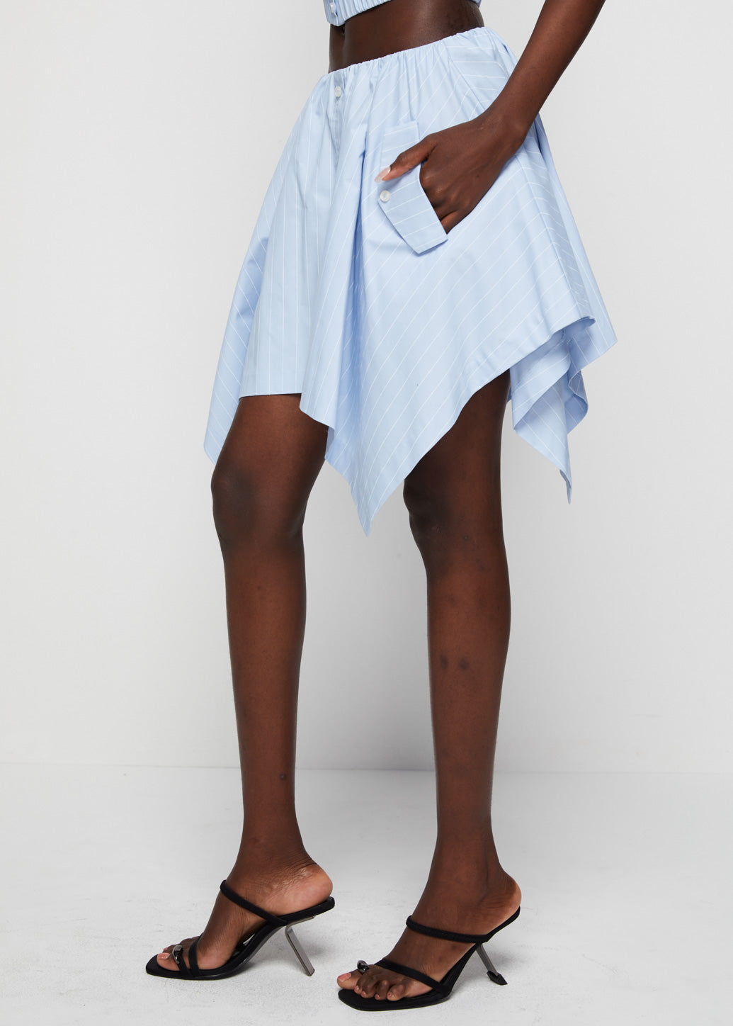 Striped flared skirt in a minimal design from the CPS x IRADA collaboration. Features a front slit with button detailing that adds a touch of femininity and movement. A casual piece that brings a fresh and chic vibe to your everyday look.