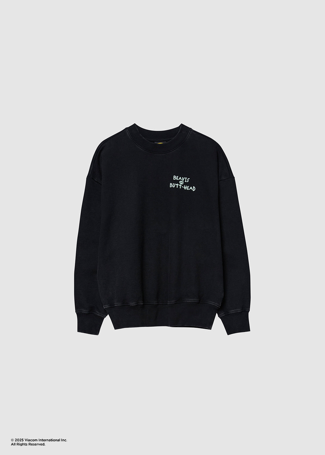 Complete your winter look with this black washed pullover, featuring Beavis and Butt-Head graphics on the back and contrasting text on the front chest. Easy to wear, it adds a cool street-style vibe with a vintage touch, perfect for the season.