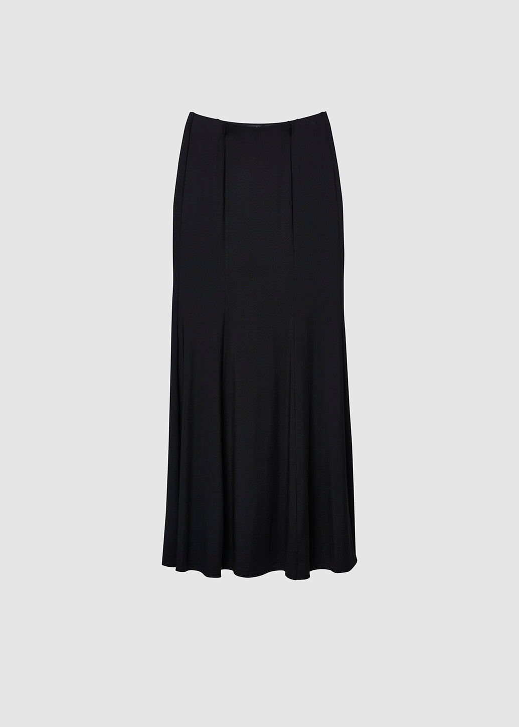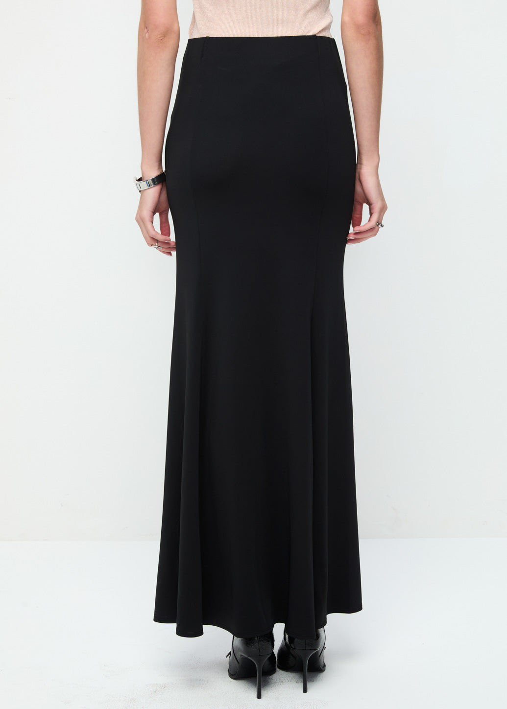 Elegant and timeless, this black flared mermaid skirt flows gracefully with every movement. Designed at ankle length, it combines soft femininity with a modern touch. Pair it with your favorite top to elevate your look with refined sophistication that is perfect for both office wear and special occasions.