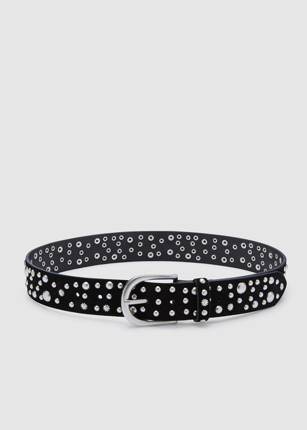 SILVER-STUDDED SUEDE BELT