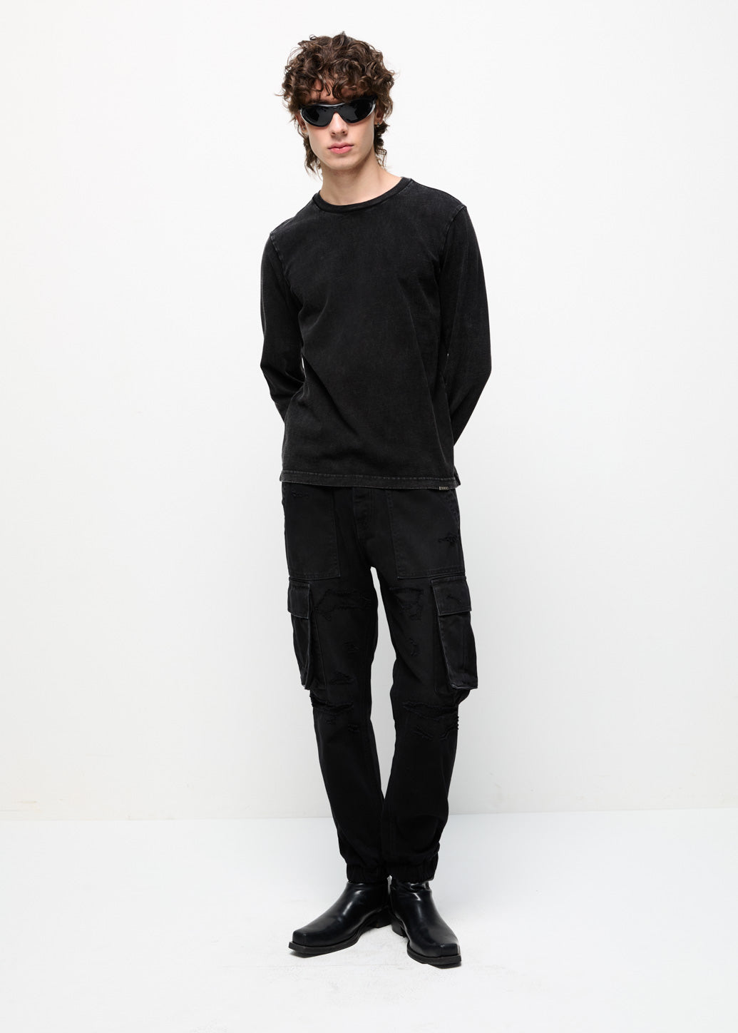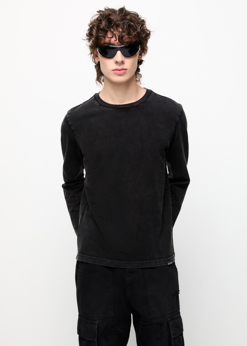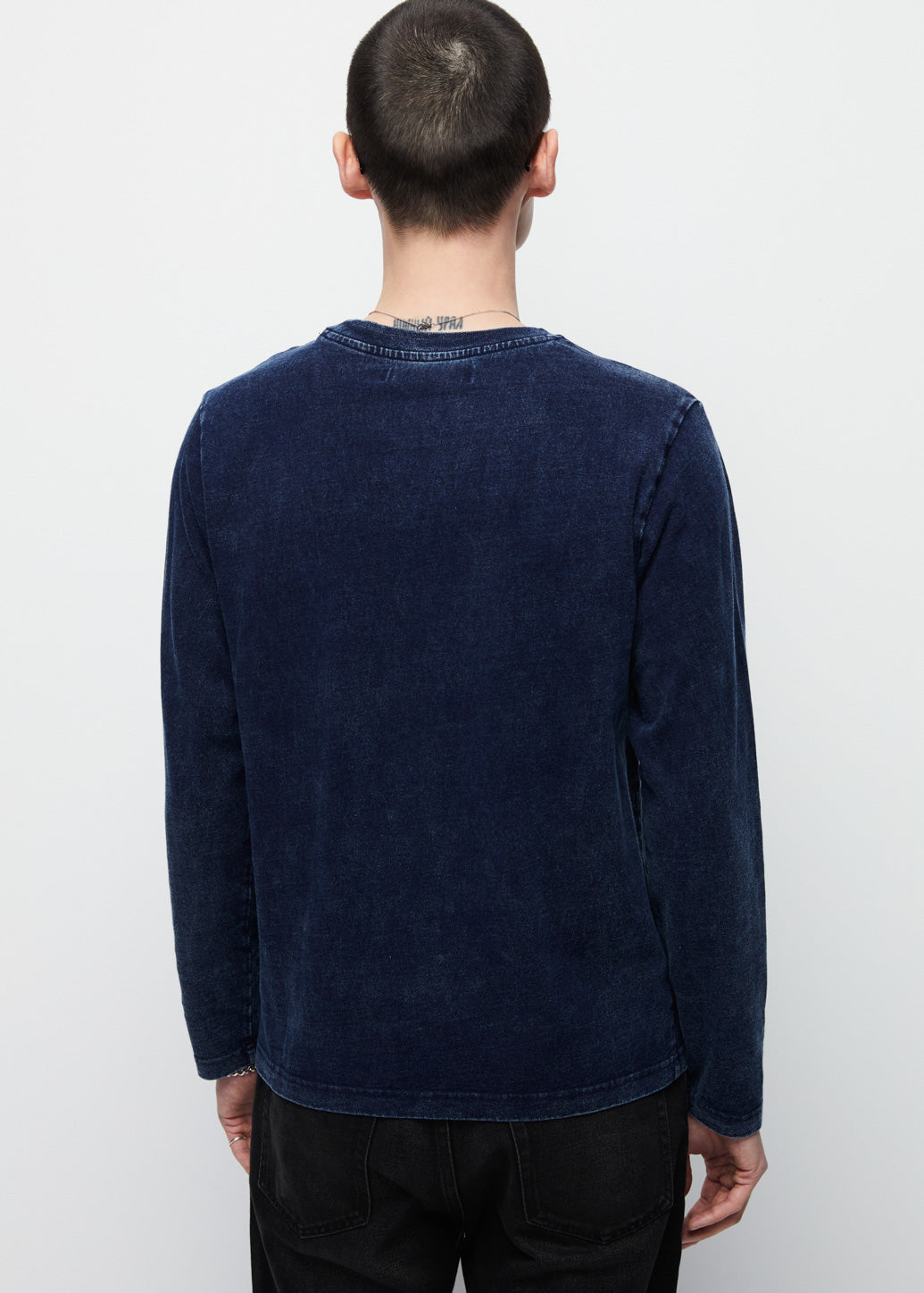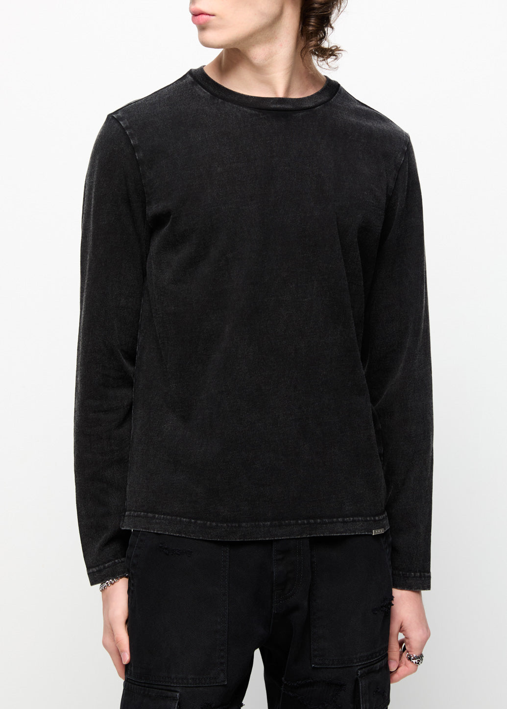 Long-sleeve washed T-shirt delivers comfort through a classic design. Featuring relaxed long sleeves with open cuffs and a washed-like denim technique for an easy, laid-back feel. It can be layered under a shirt or a short-sleeve tee to create multiple looks, adding confidence and style to every outfit.