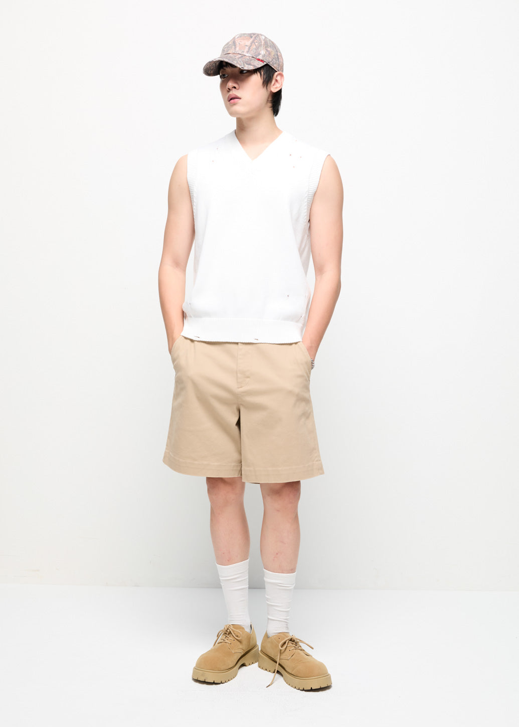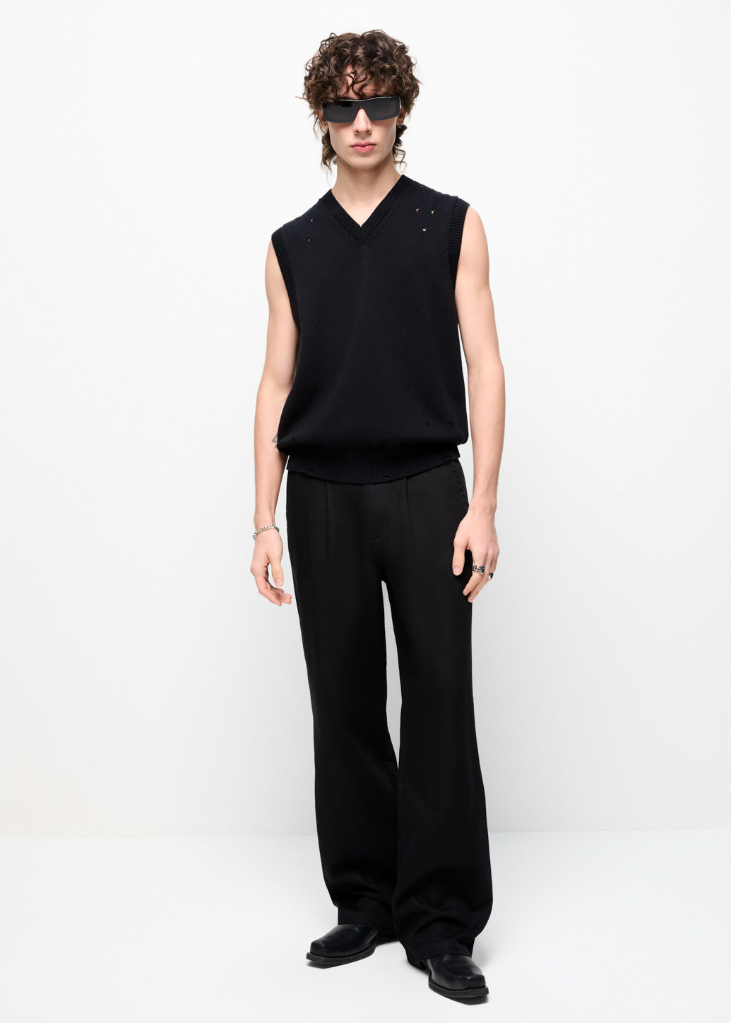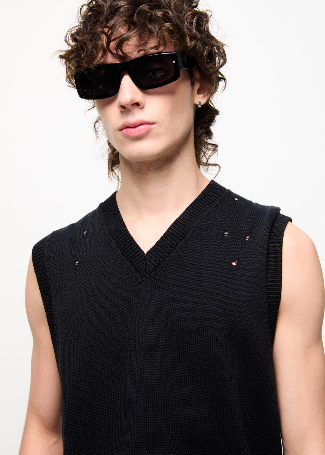 A knitted vest that stands out with its modern function and style. The smart design incorporates a rugged, cool element with a patterned distressed structure. Choose to wear it without a base layer or layer it over a shirt or t-shirt. It is suitable for building layered outfits for any ensemble.