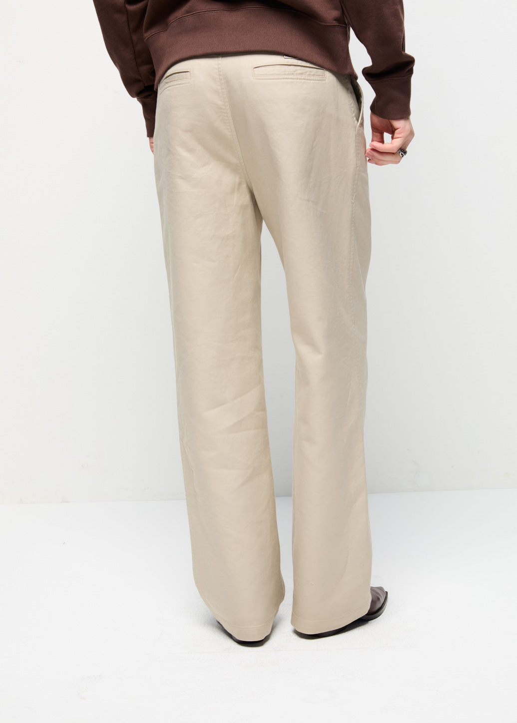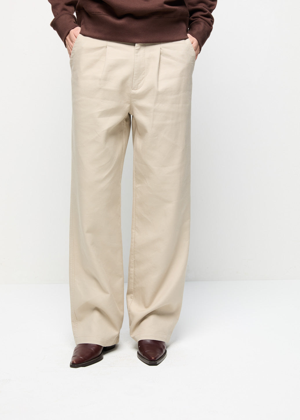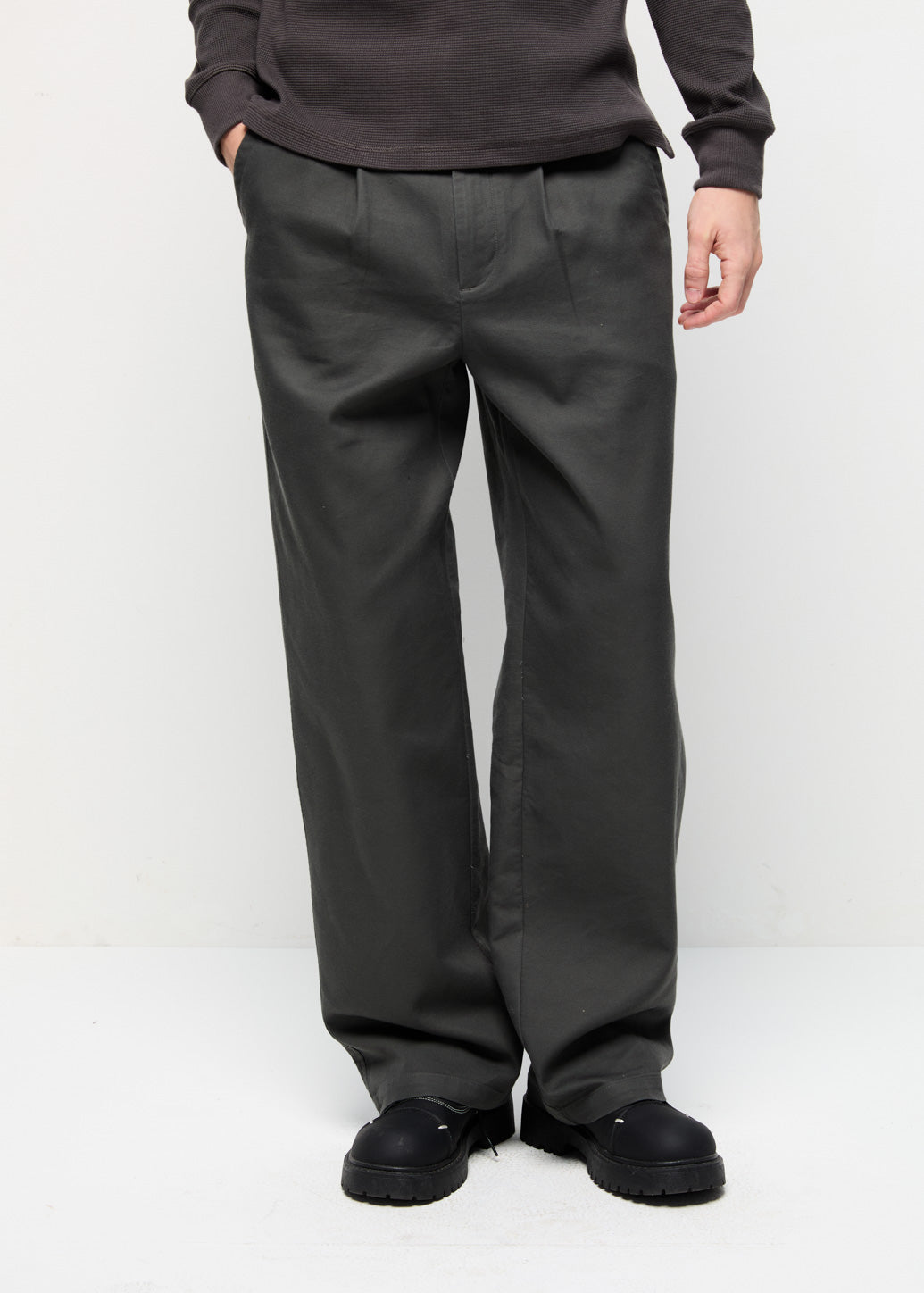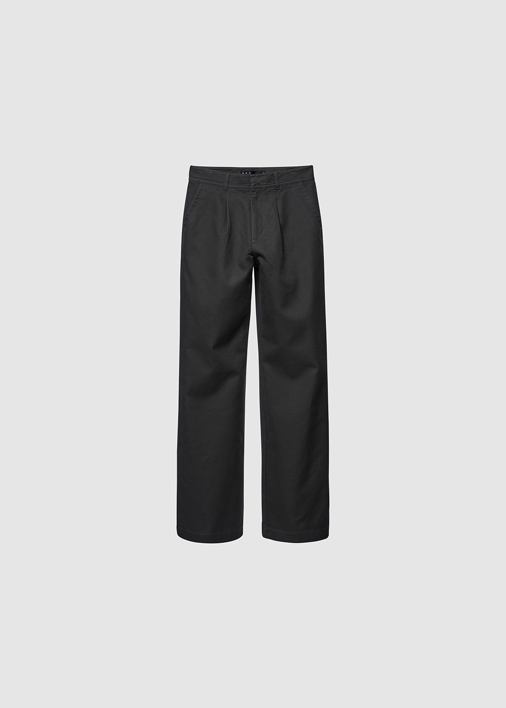 Straight-leg trousers woven from durable, highly flexible twill fabric. The cool yet sophisticated design includes a pleat detail. Available in three basic color options, they are versatile for various looks, completing both casual and smart ensembles.