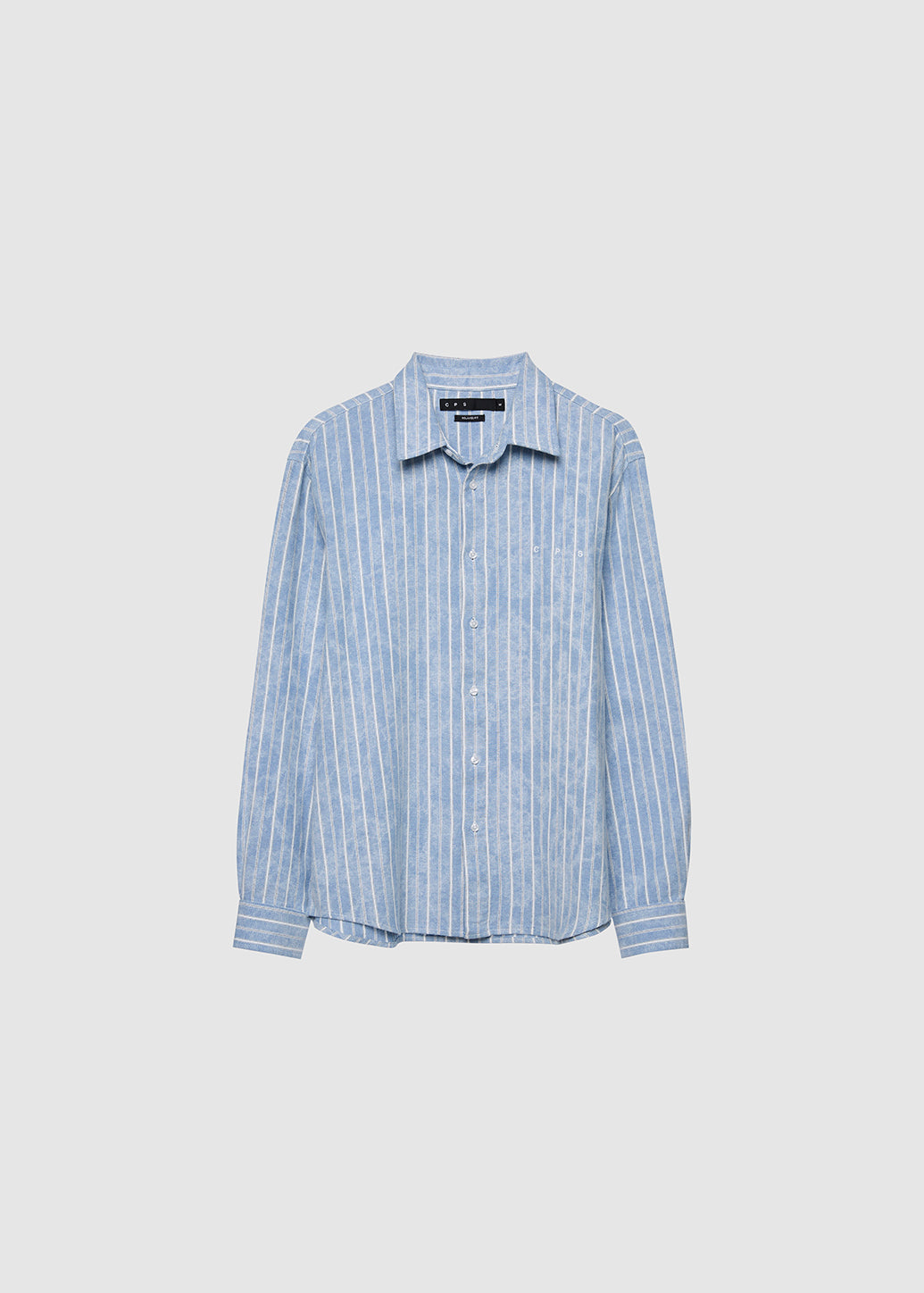 A striped shirt that captures timeless vintage charm. The fabric is woven with uneven dyeing techniques, creating unique patterns and vintage texture. Finished with delicate C P S logo embroidery on the chest, delivering a classic look with a modern classic edge.