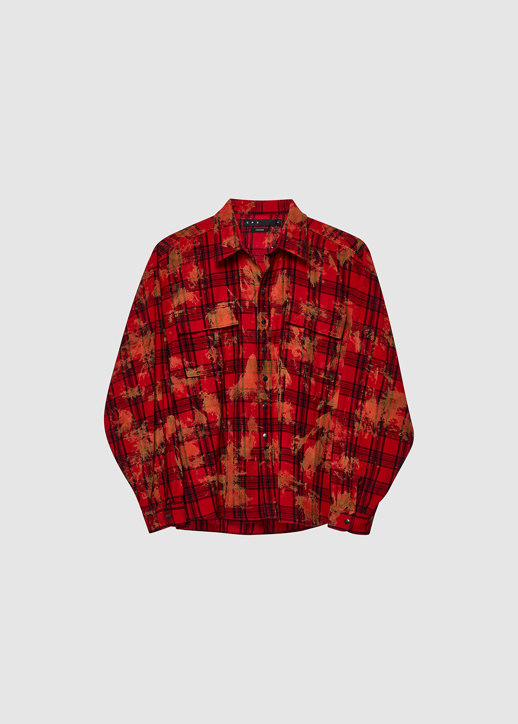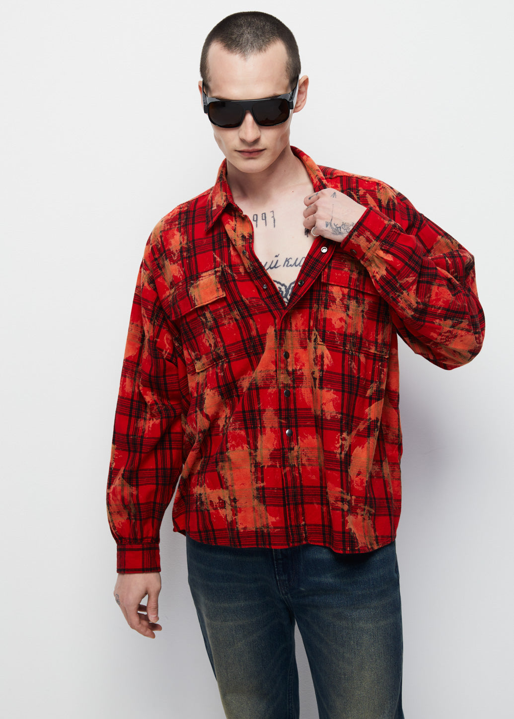Long-sleeve checked shirt in black and red plaid, offering a cool street look. Designed in a loose fit and finished in auspicious colors, perfect for the Chinese New Year, and dual chest pockets that add a workwear-inspired touch. Ideal to wear on its own or layered as an overshirt.