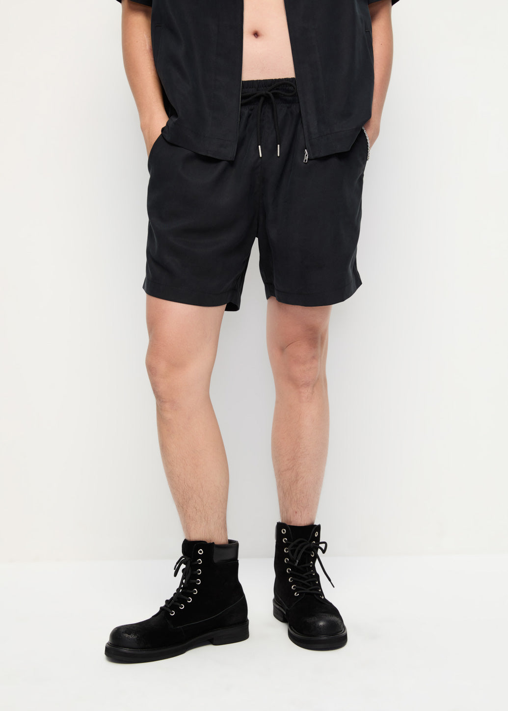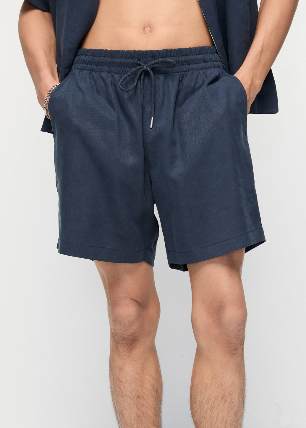 Sweatpants shorts in a cupro linen kellen fabric, offering a soft, comfortable feel with an elastic waistband and adjustable drawstring. Easy to style with T-shirts or matching shirts, these men’s shorts create a relaxed yet polished casual look.