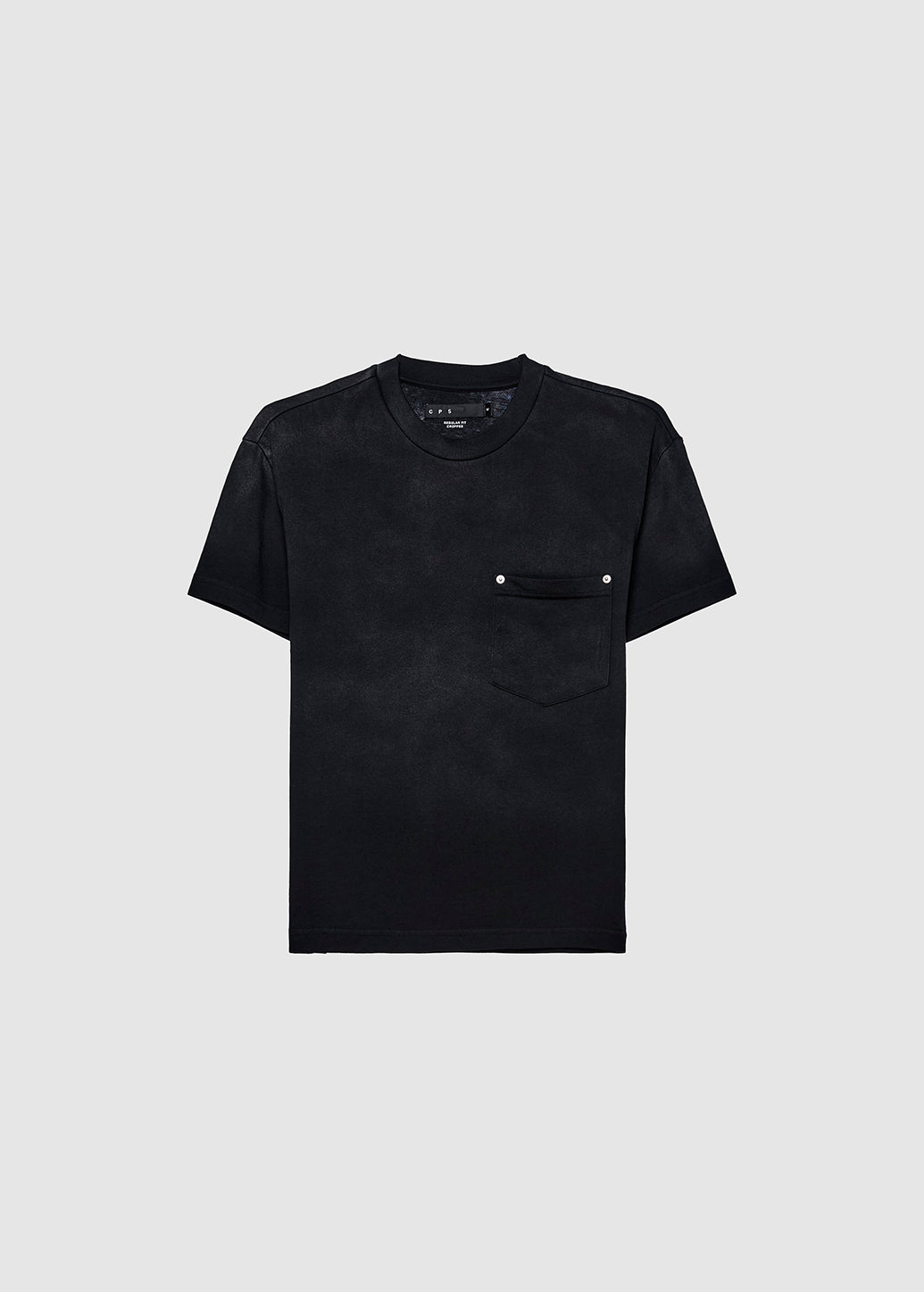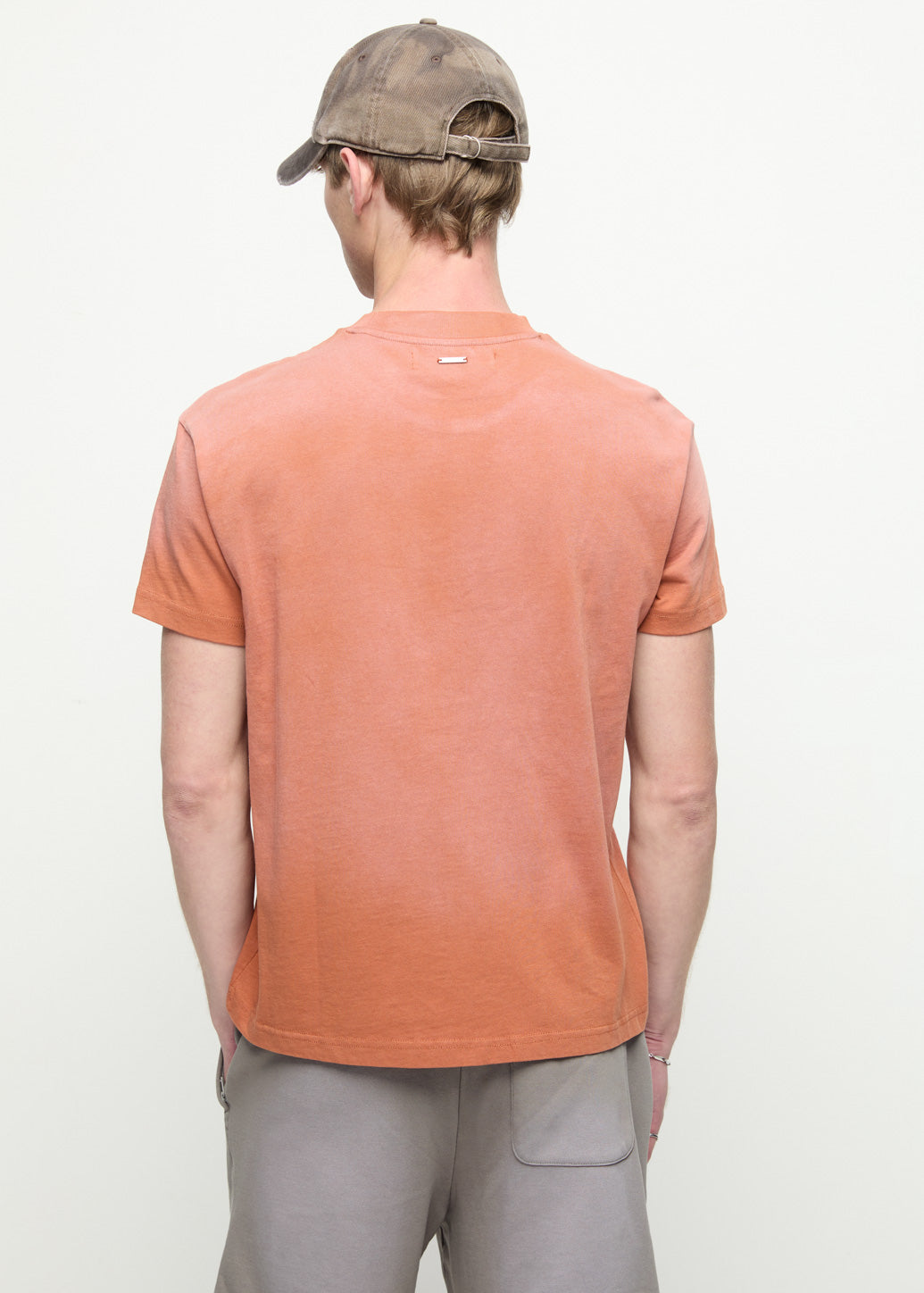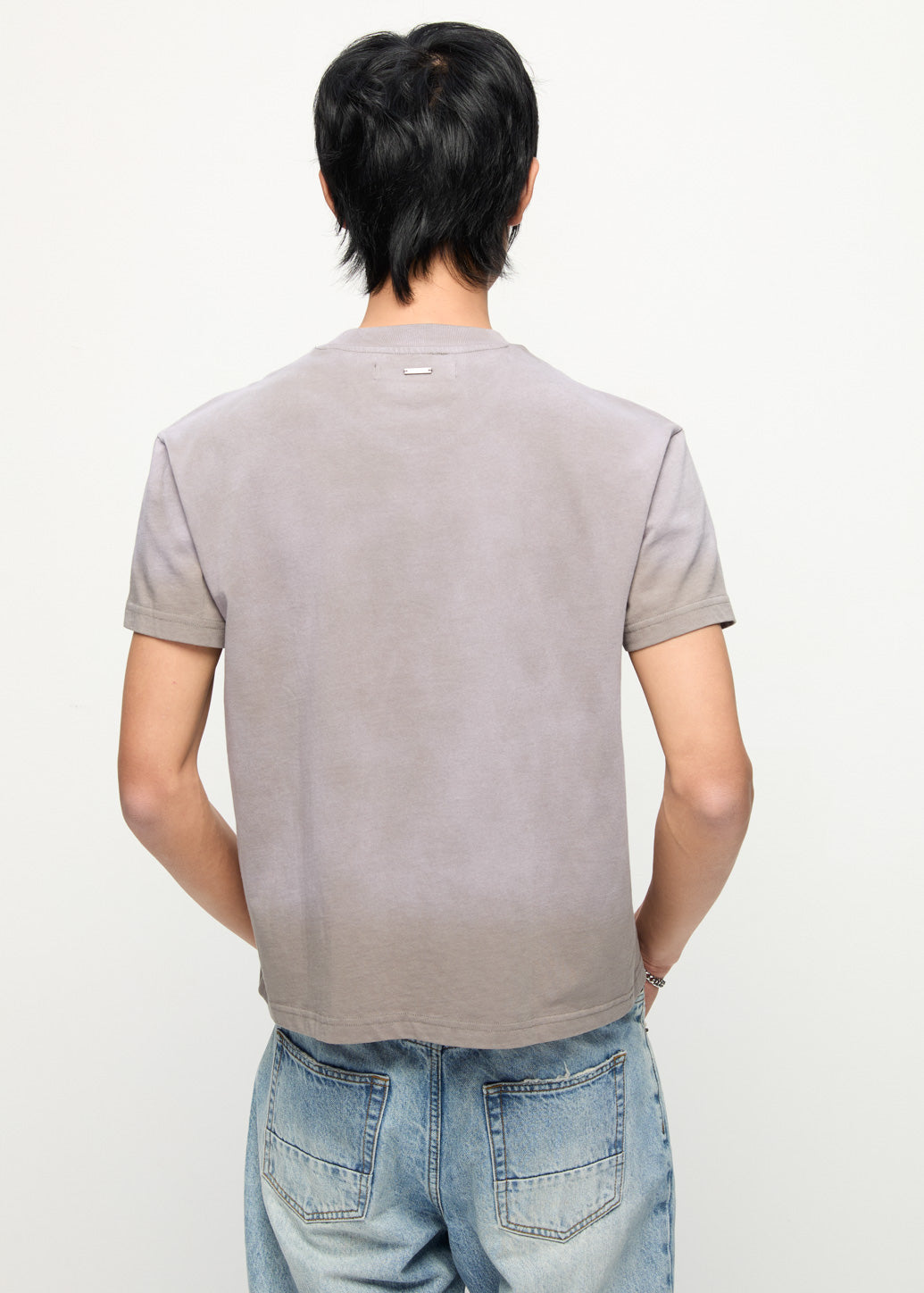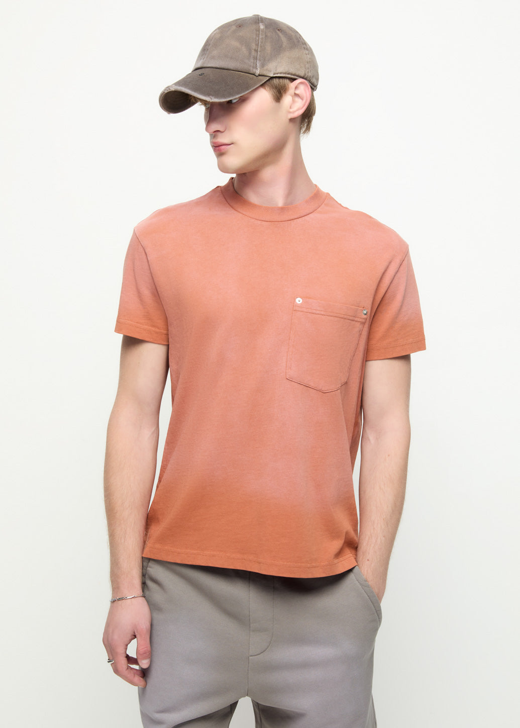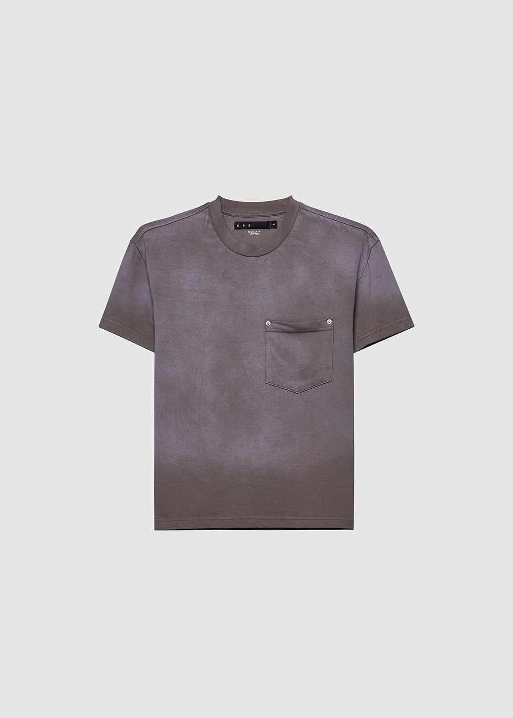A round-neck T-shirt in a basic sun-faded tone, delivering an evenly sun-faded washed fabric with a refined vintage look. Finished with a chest pocket patch, this versatile essential is designed for easy mix-and-match styling, perfectly suited for everyday wear.
