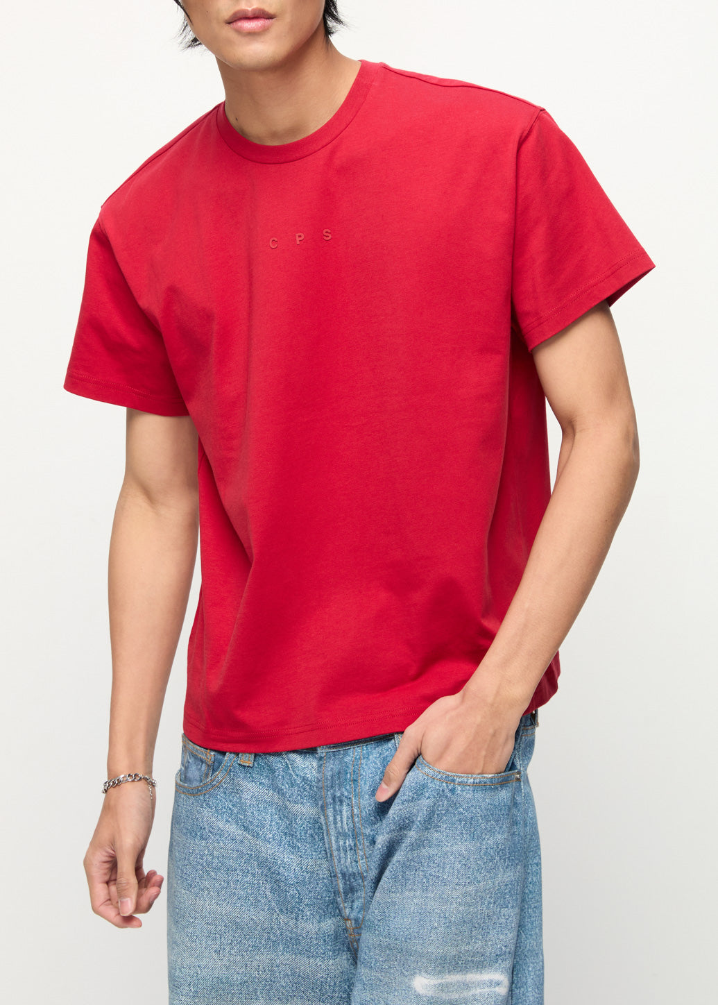 This basic tee from CPS features a stylish cropped fit for a modern silhouette. It is highlighted by a bold CPS logo embroidery across the chest, adding a minimal yet edgy touch to its street vibe. The perfect go-to piece for a chic, confident look when paired with high-waisted bottoms.