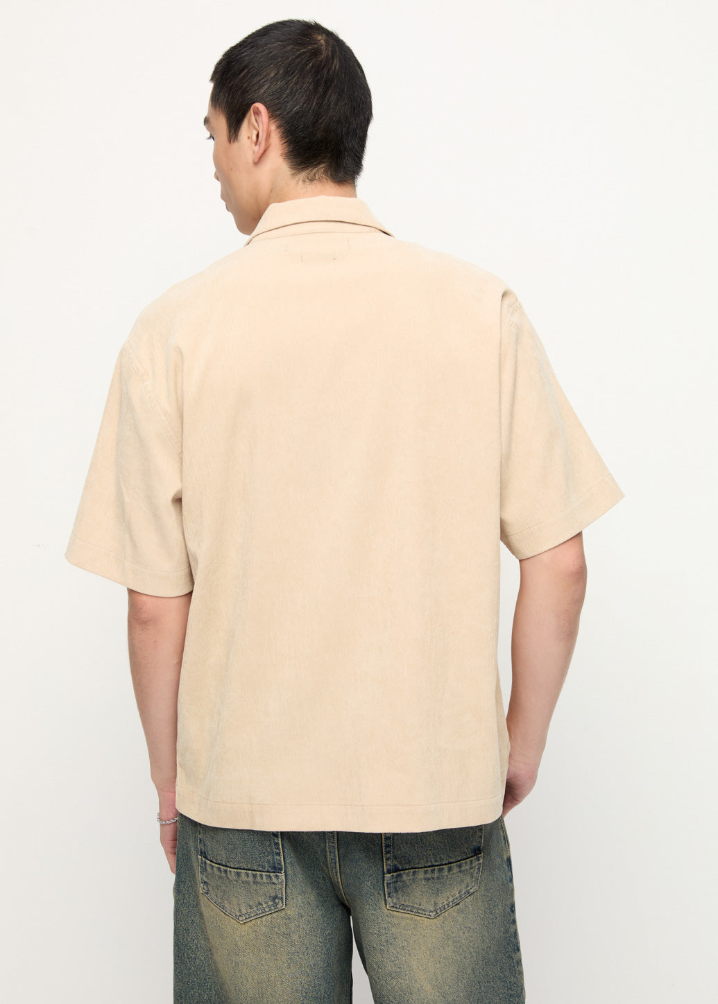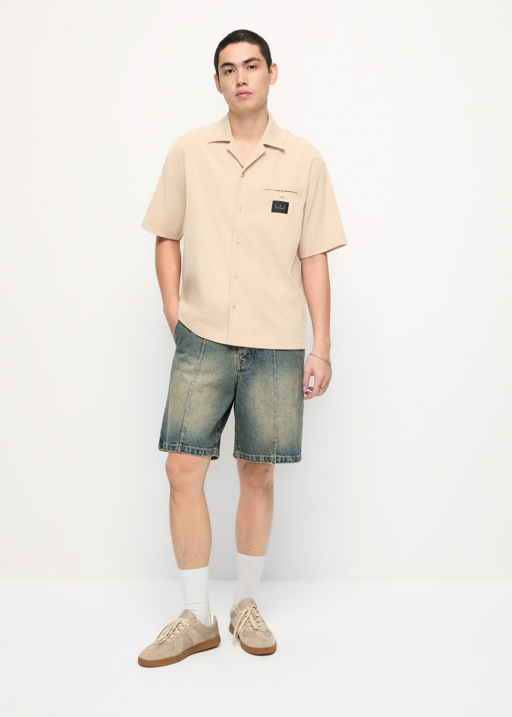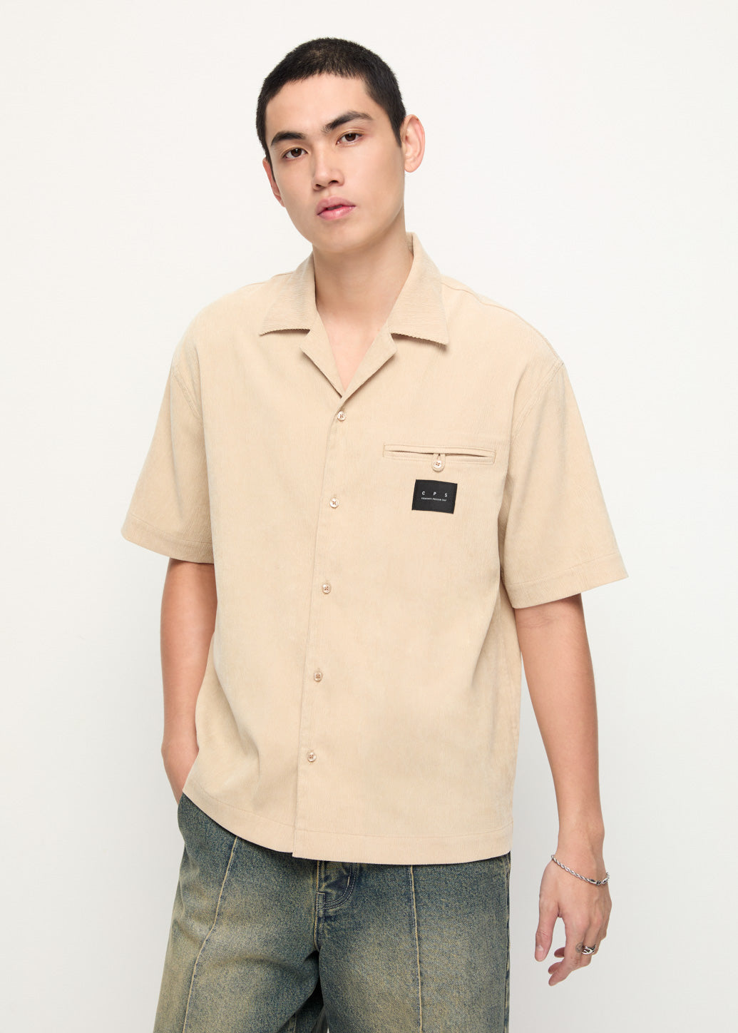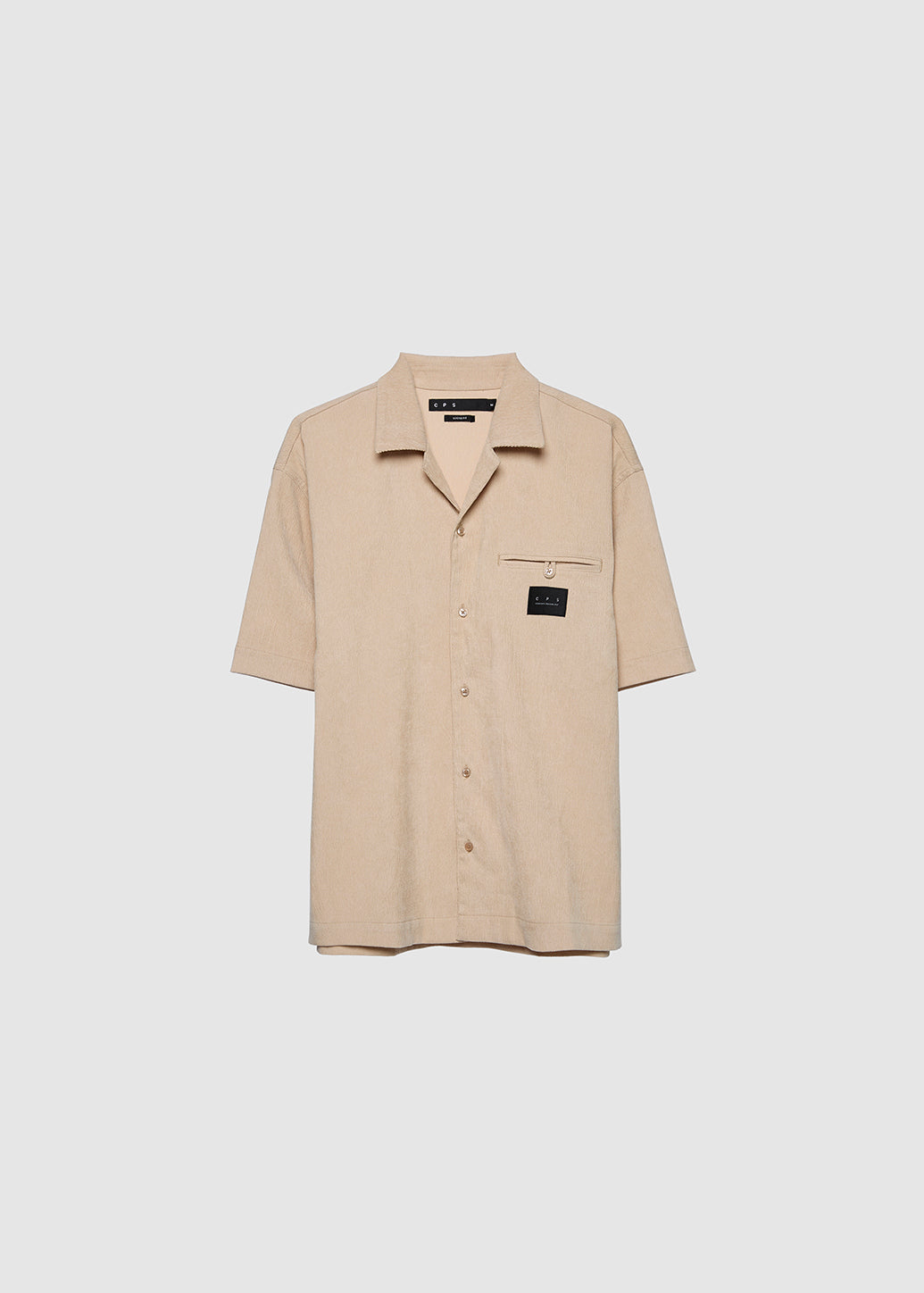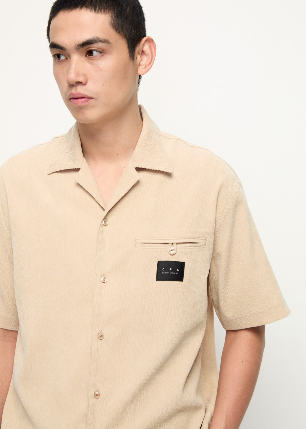 A short-sleeve shirt features a sophisticated chest welt pocket for a clean and streamlined look. It is designed with a signature C P S logo label discreetly placed under the pocket. This essential staple combines minimalist and smart-casual aesthetics, making it perfect for any everyday outfit.