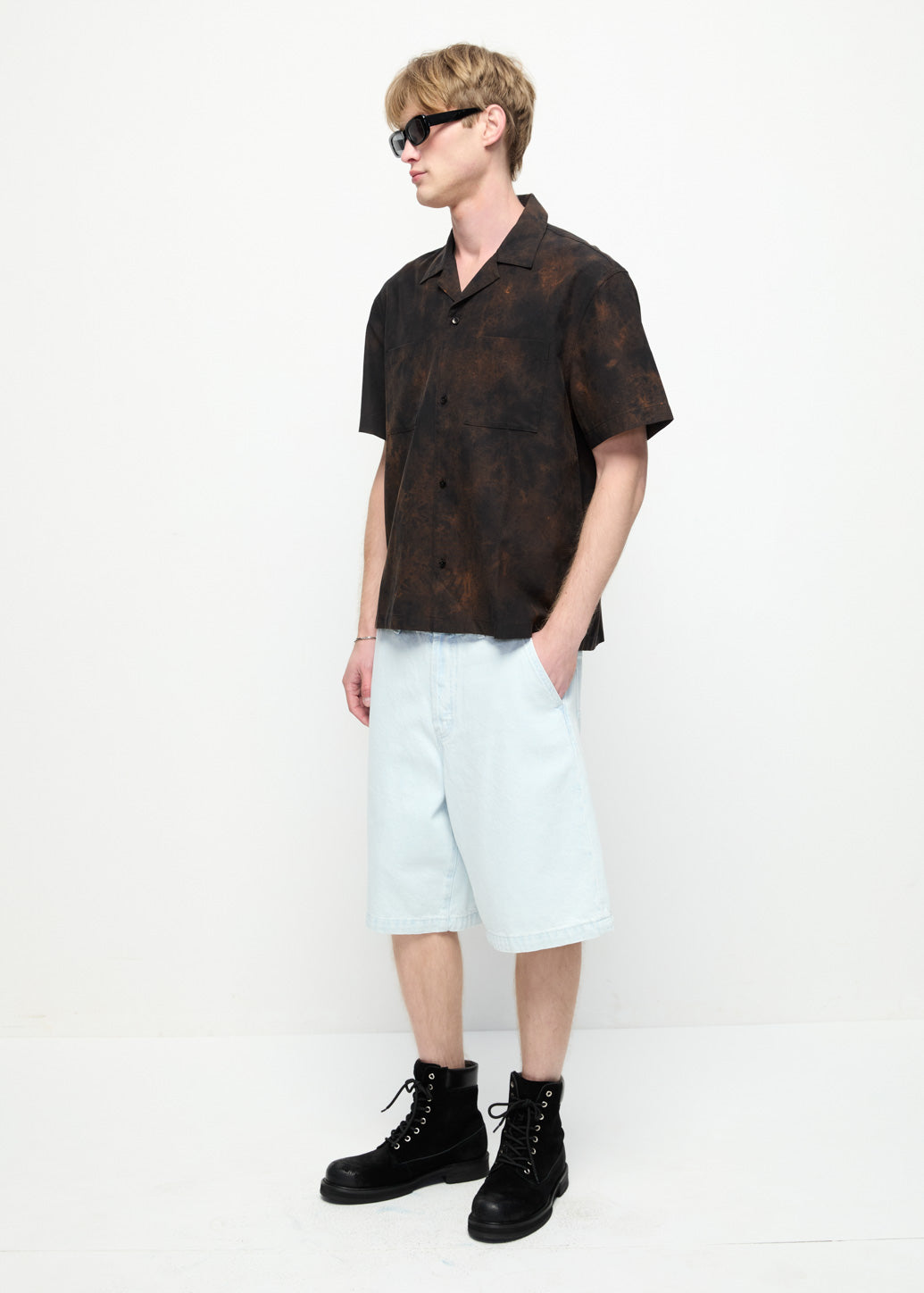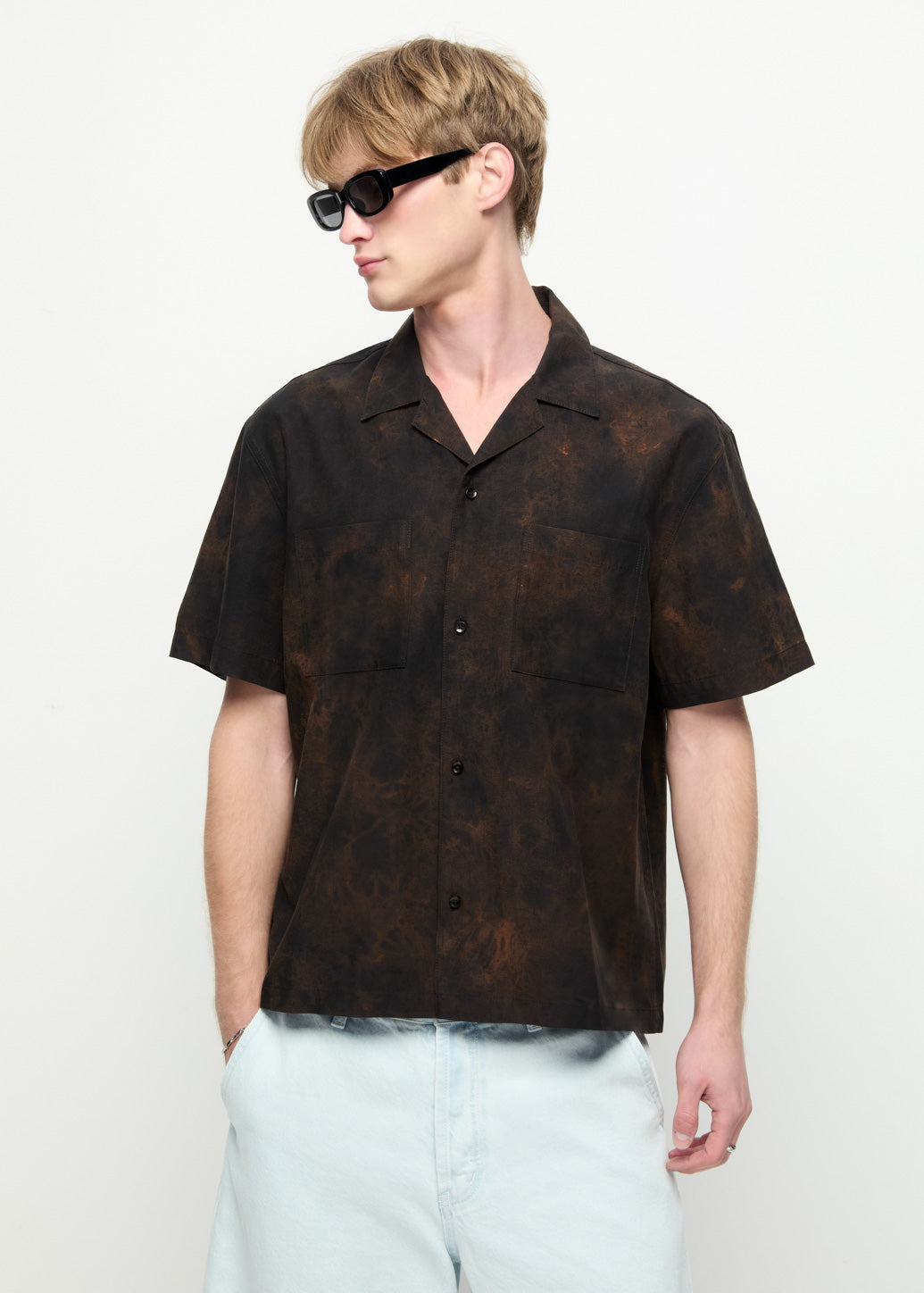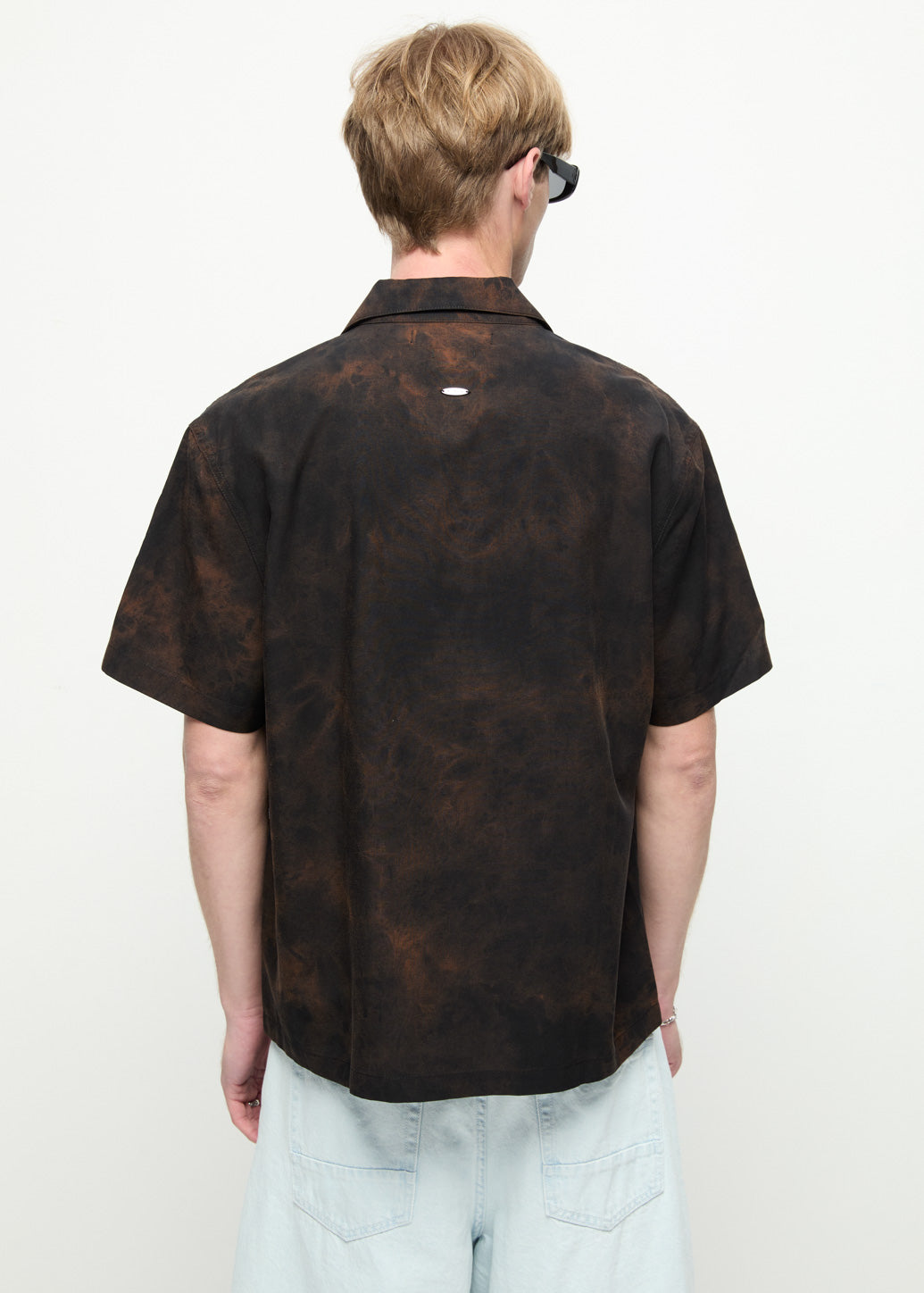 A short-sleeve shirt embodying the soft rebellious concept in a sophisticated dark brown hue. With piping details along the edges, it strikes a balance between confidence and cool. The double chest pockets offer a clean and confident look that elevates everyday styling.