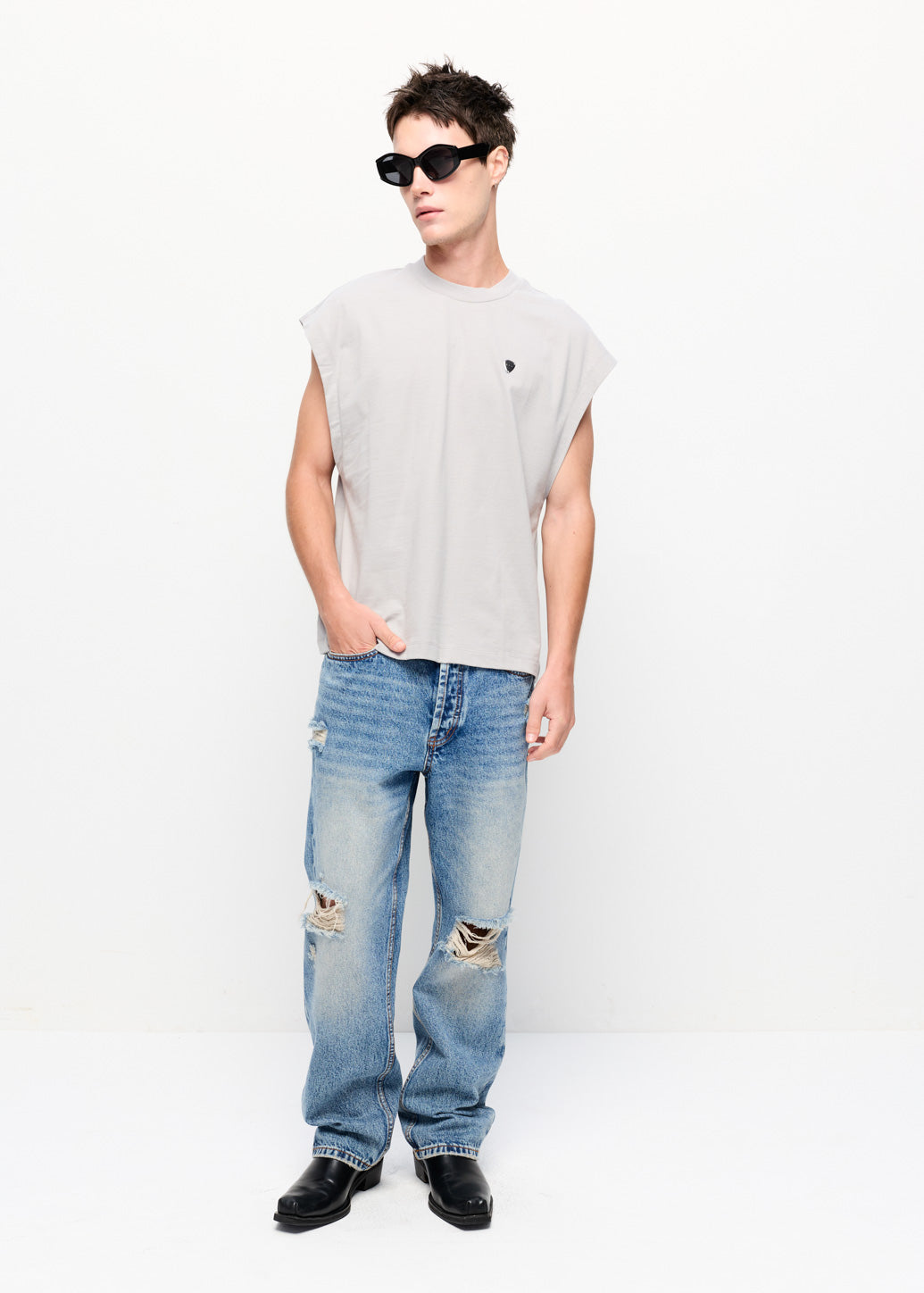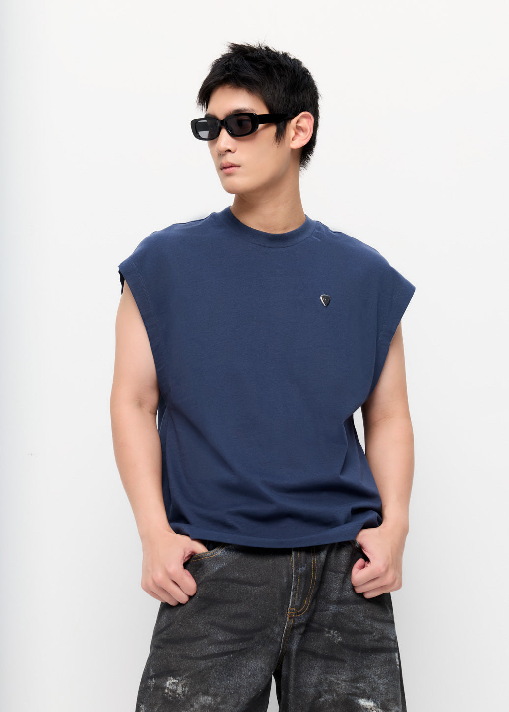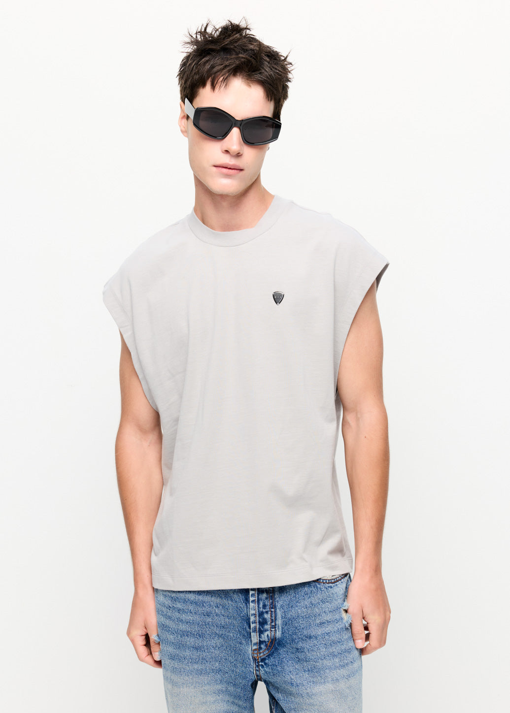 This loose-fit sleeveless top features a crew neckline and an iconic metal guitar pick logo detail, delivering a relaxed, modern look. Pair it with denim shorts and sneakers for a laid-back summer vibe, or layer it under an unbuttoned shirt to add a cool edge to your outfit.