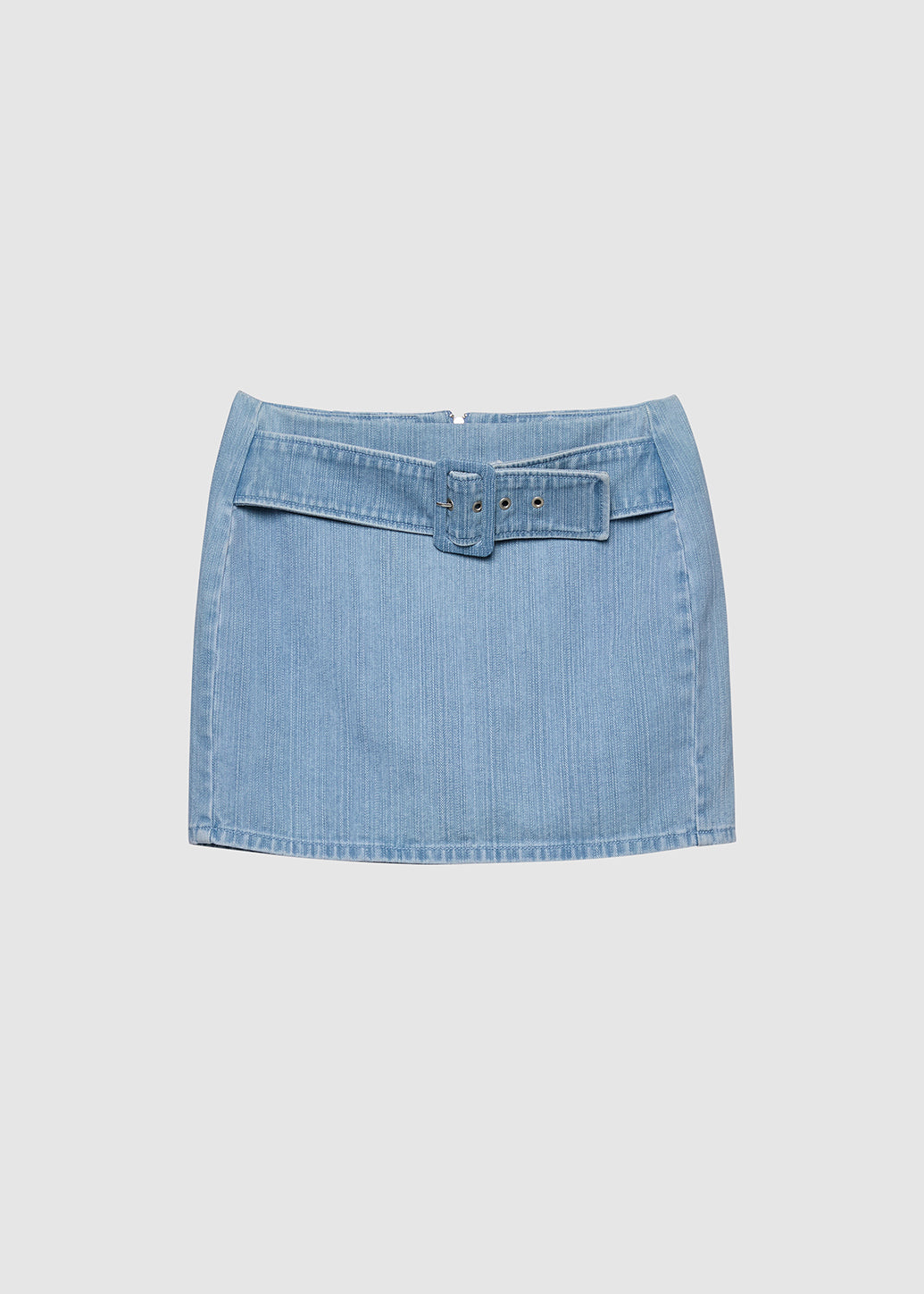 A mini skirt that offers a bold and confident vibe. It is highlighted by a large waist belt that adds a cool factor while providing a secure fit. Match it with any top for a street or party look that is both edgy and chic.