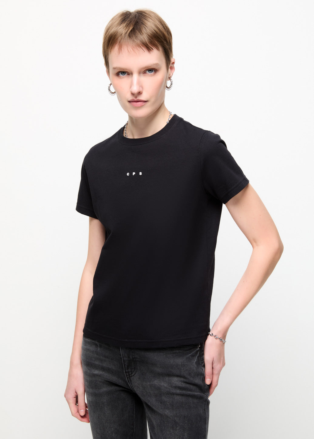 Fill your wardrobe with this well-fitted T-shirt in a classic color. Accented with the latest C P S logo text print on the chest, this ultimate styling transitions from relaxed to work with zero effort.