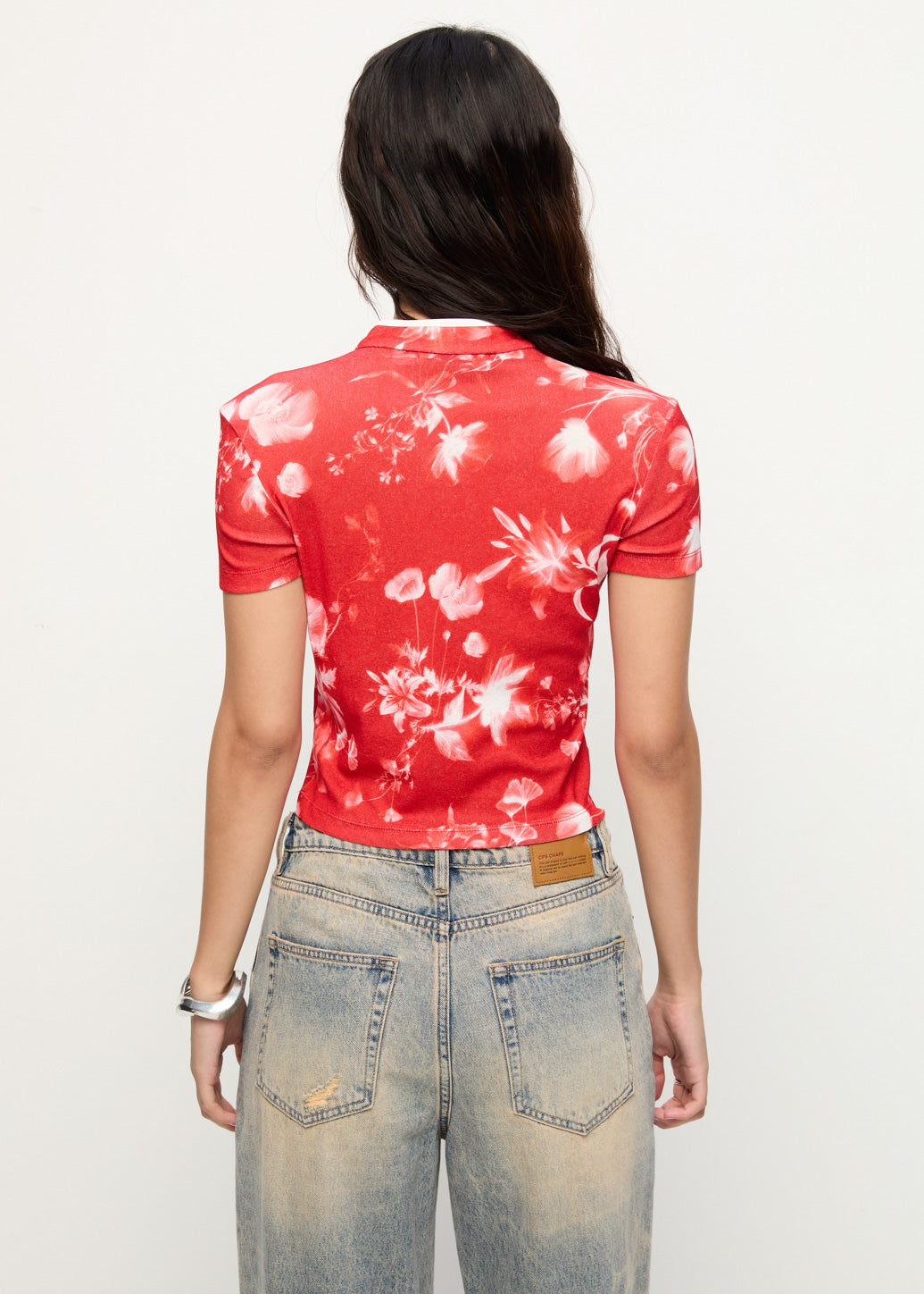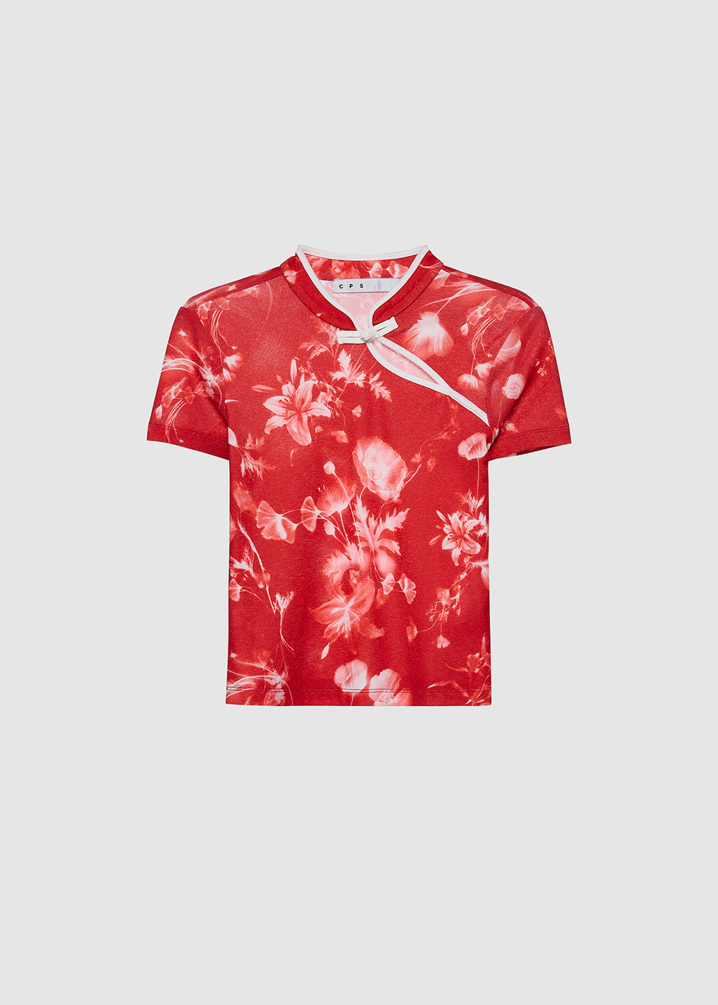 FLORAL PRINTED MANDARIN COLLAR TOP
