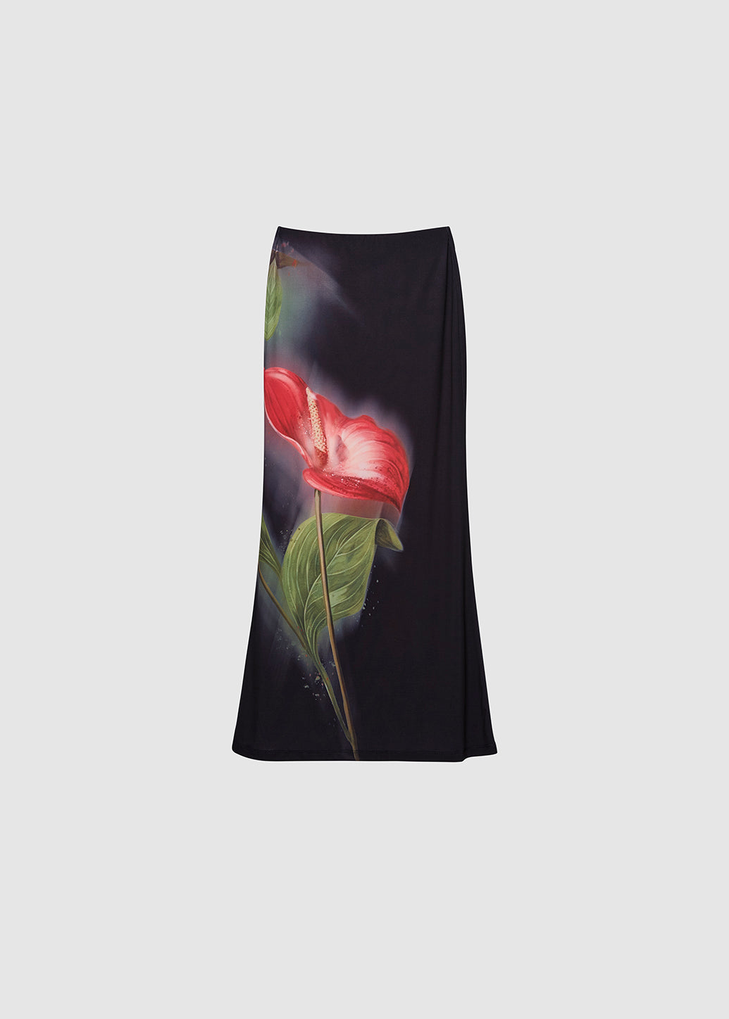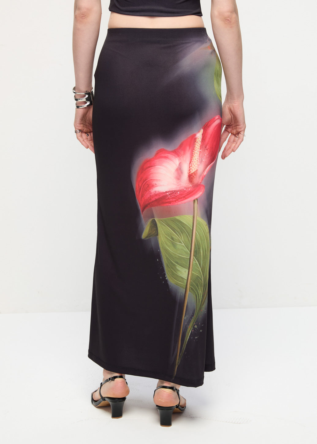 FLAMINGO FLOWER PRINTED MAXI SKIRT