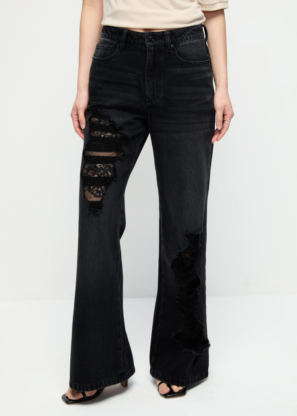 LACE CUT-OUT FLARE JEANS