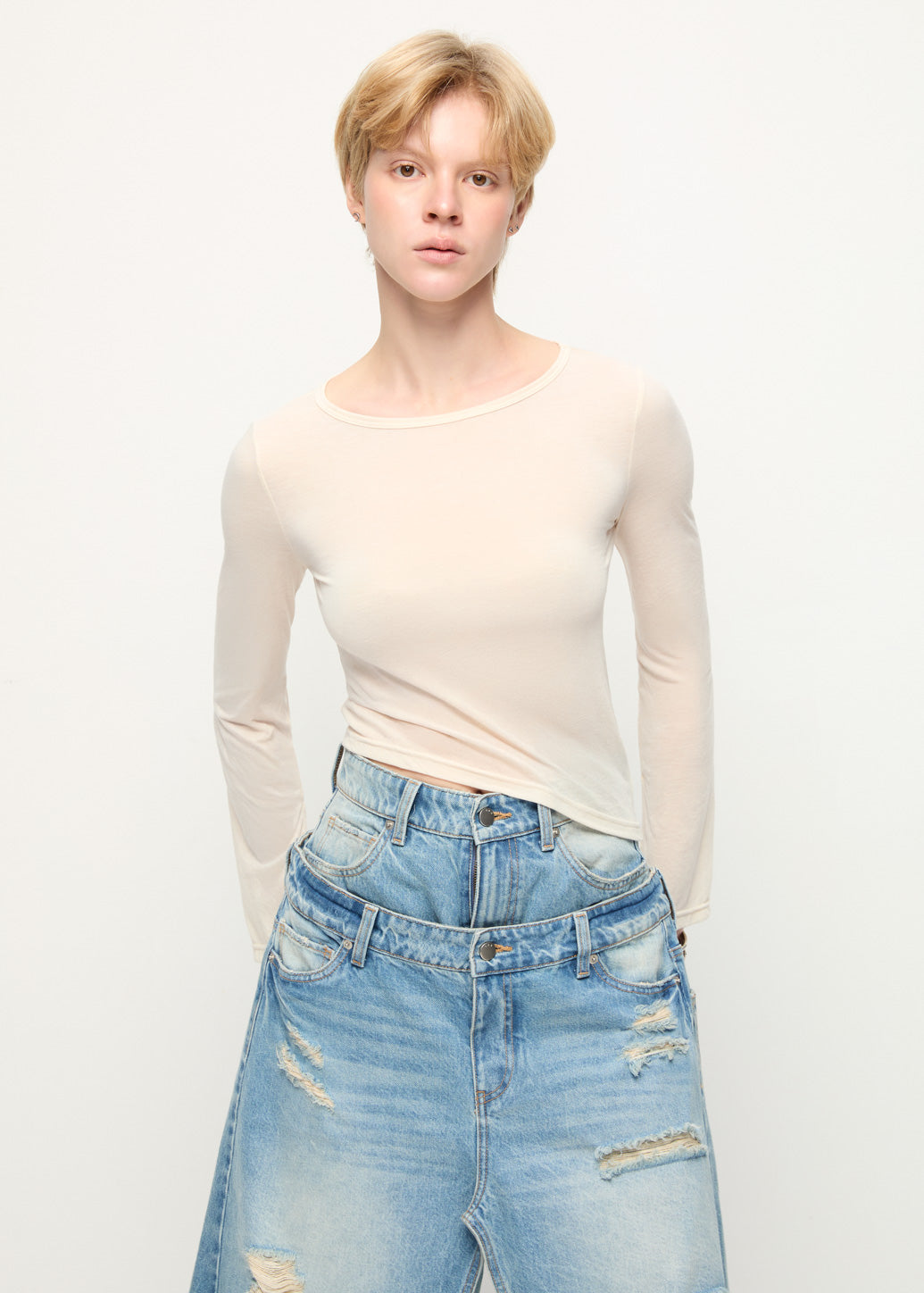 UNDERBUST SEAM LONG-SLEEVE TOP