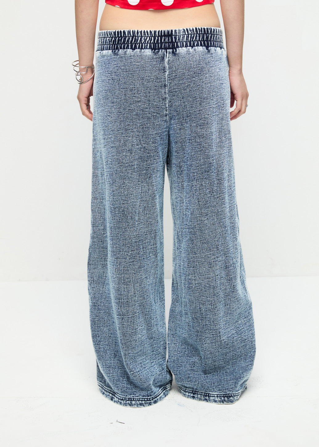 Wide-leg jeans designed with an elastic drawstring waistband for maximum ease and comfort. Lace piping and track-inspired detailing add a casual, modern touch to the relaxed silhouette. Pair these with our matching frog button denim jacket for a coordinated, contemporary Chinese New Year look.