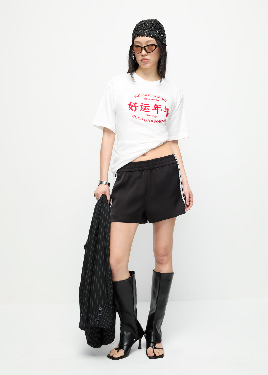 Shorts designed with an elastic waistband and delicate lace track detailing for a feminine, sporty touch. The relaxed shape offers uncompromising comfort while maintaining a chic, casual aesthetic.
