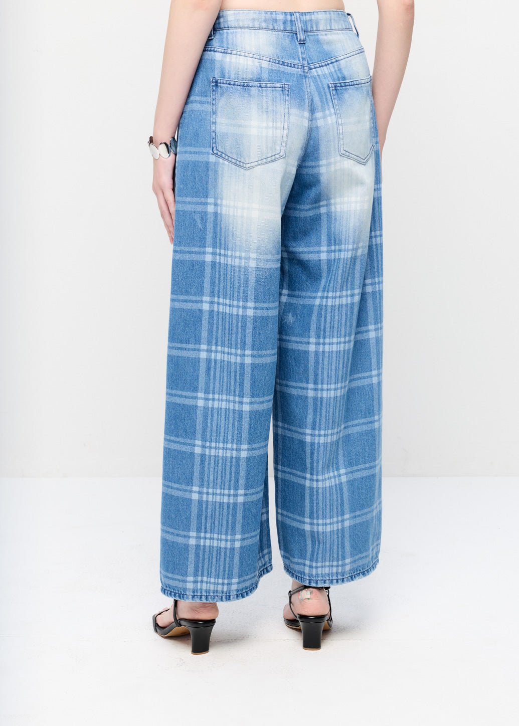 WIDE LEG CHECKED JEANS