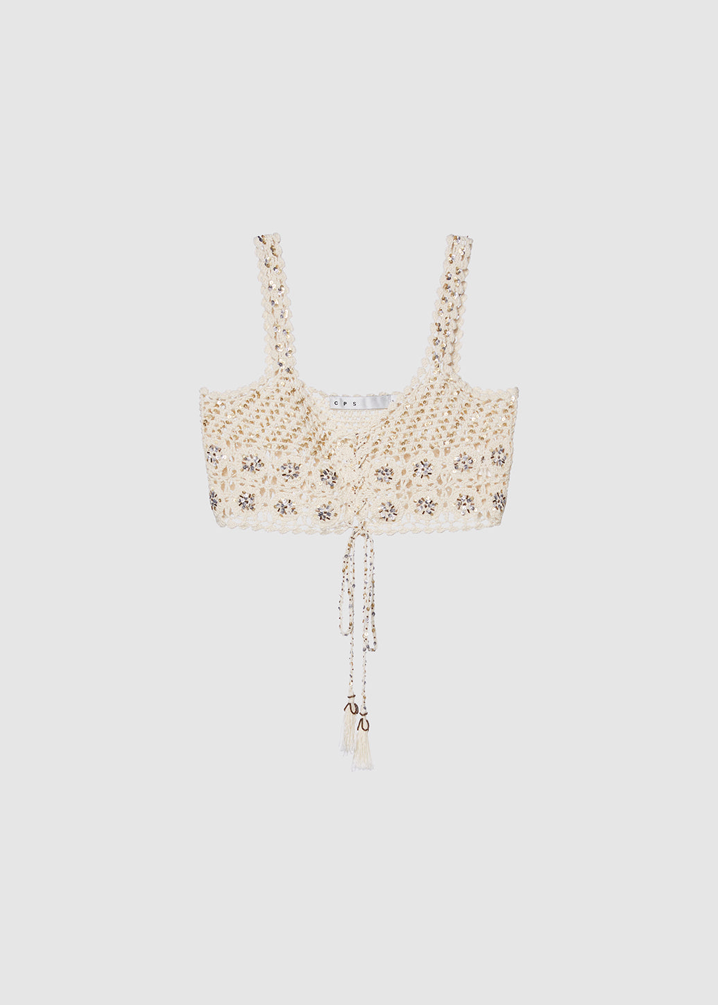 This crochet camisole top features a delicate open-knit texture with a lightweight and airy feel. Designed with shoulder straps and a front tie closure, it allows adjustable fit while the tassel detail adds a soft, feminine touch. Perfect for wearing on its own during summer days or layering over a tank, bikini, or dress for an effortless summer look.