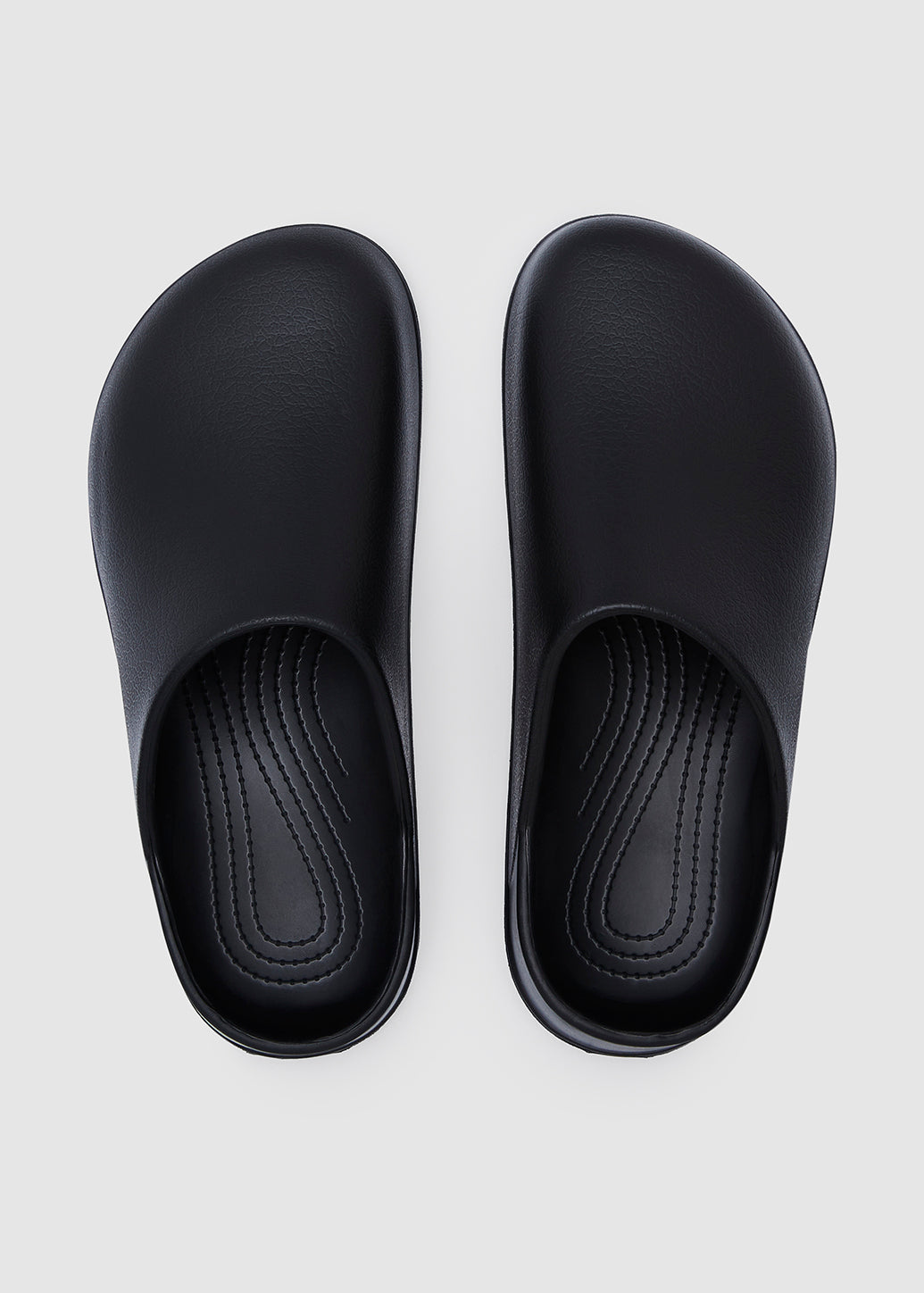 Minimalist rubber clogs featuring a sleek rounded-toe design. Crafted from lightweight and easy-to-clean materials, perfect for those seeking a modern yet comfortable daily look.